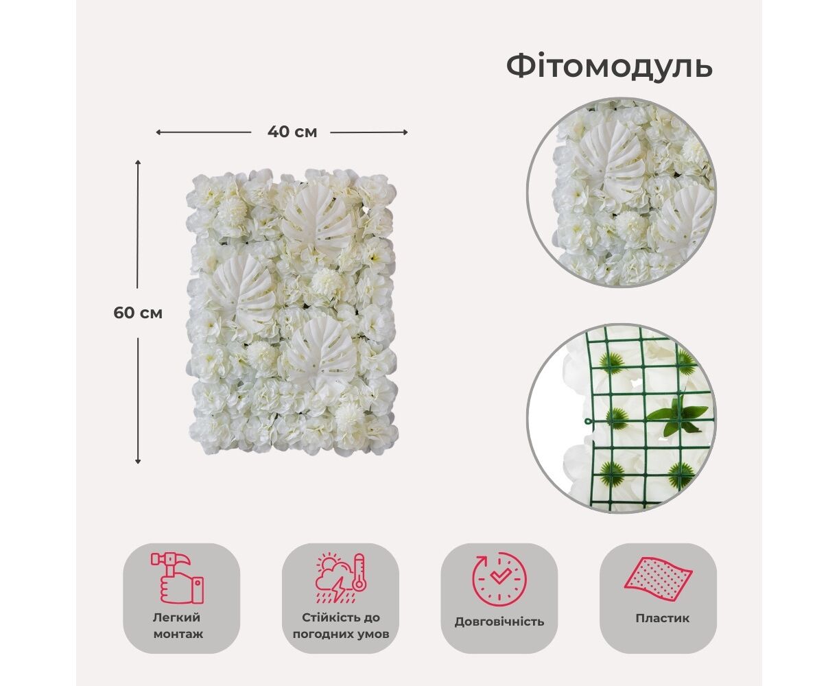 Искусственный фитомодуль из цветов "Белые цветы", 40*60 см