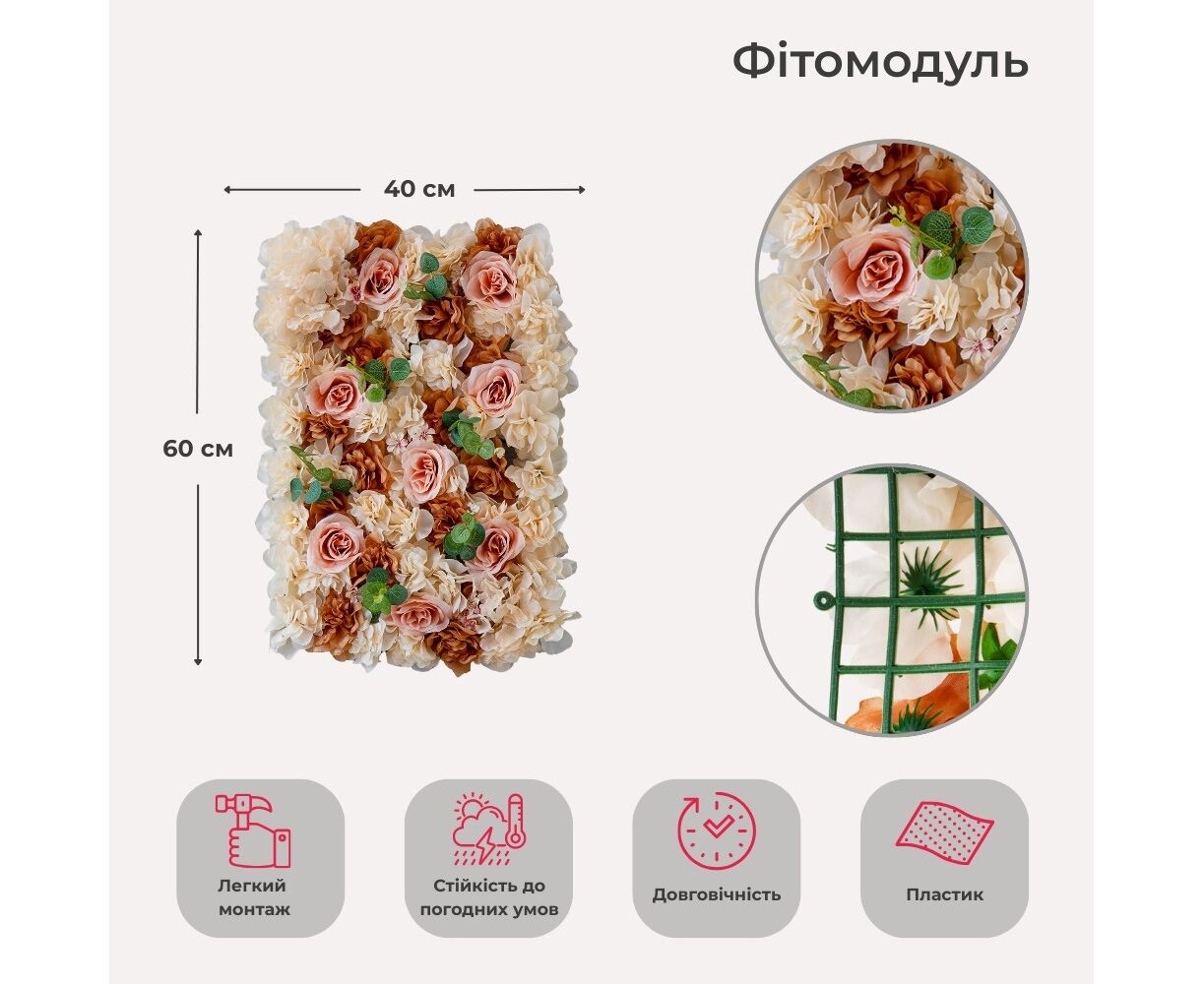Искусственный фитомодуль из цветов "Оранжевые розы", 40*60 см