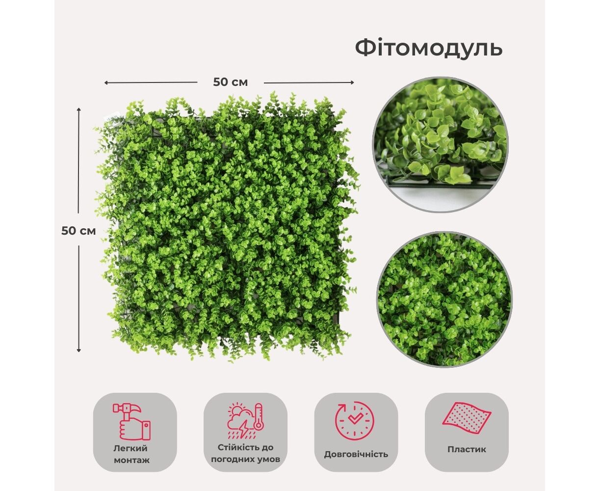 Фитомодуль искусственный "Самшит", 50*50 cм