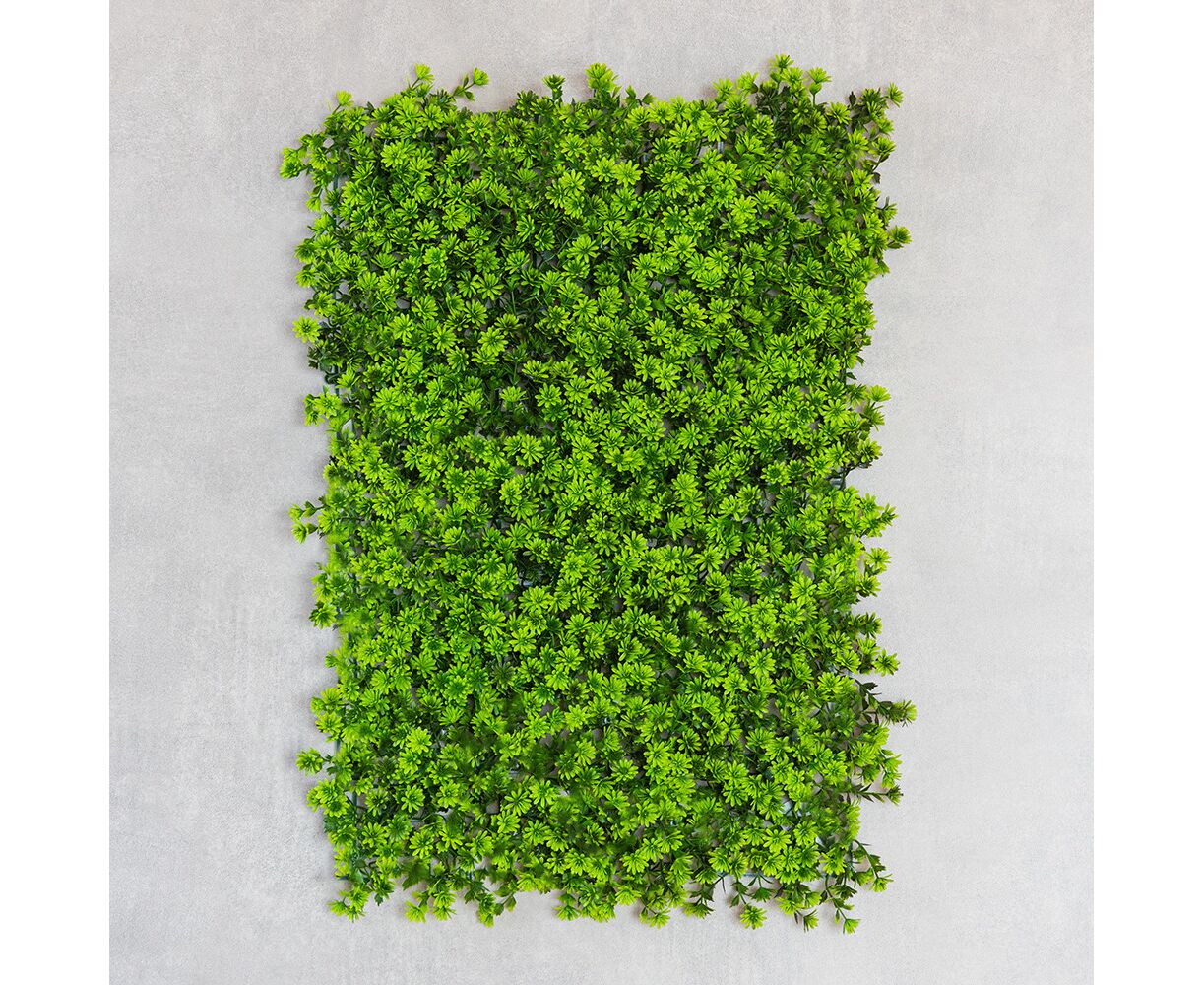 Высота: 7 Длина: 60 Материал: Пластик Ширина: 40 Цвет: Зелёный Длина панели – 60 см, ширина – 40 см, высота – 7 см. Декоративная панель из искусственной зелени – стильное решение для вертикального или горизонтального озеленения любого пространства....
