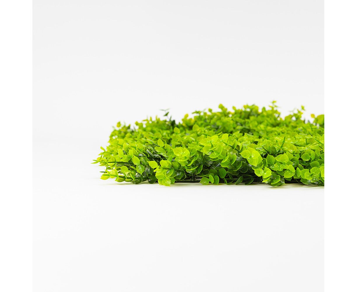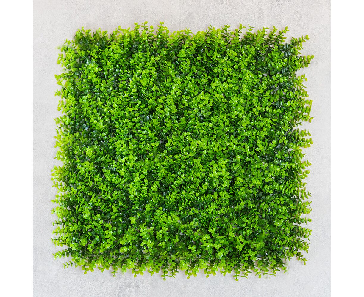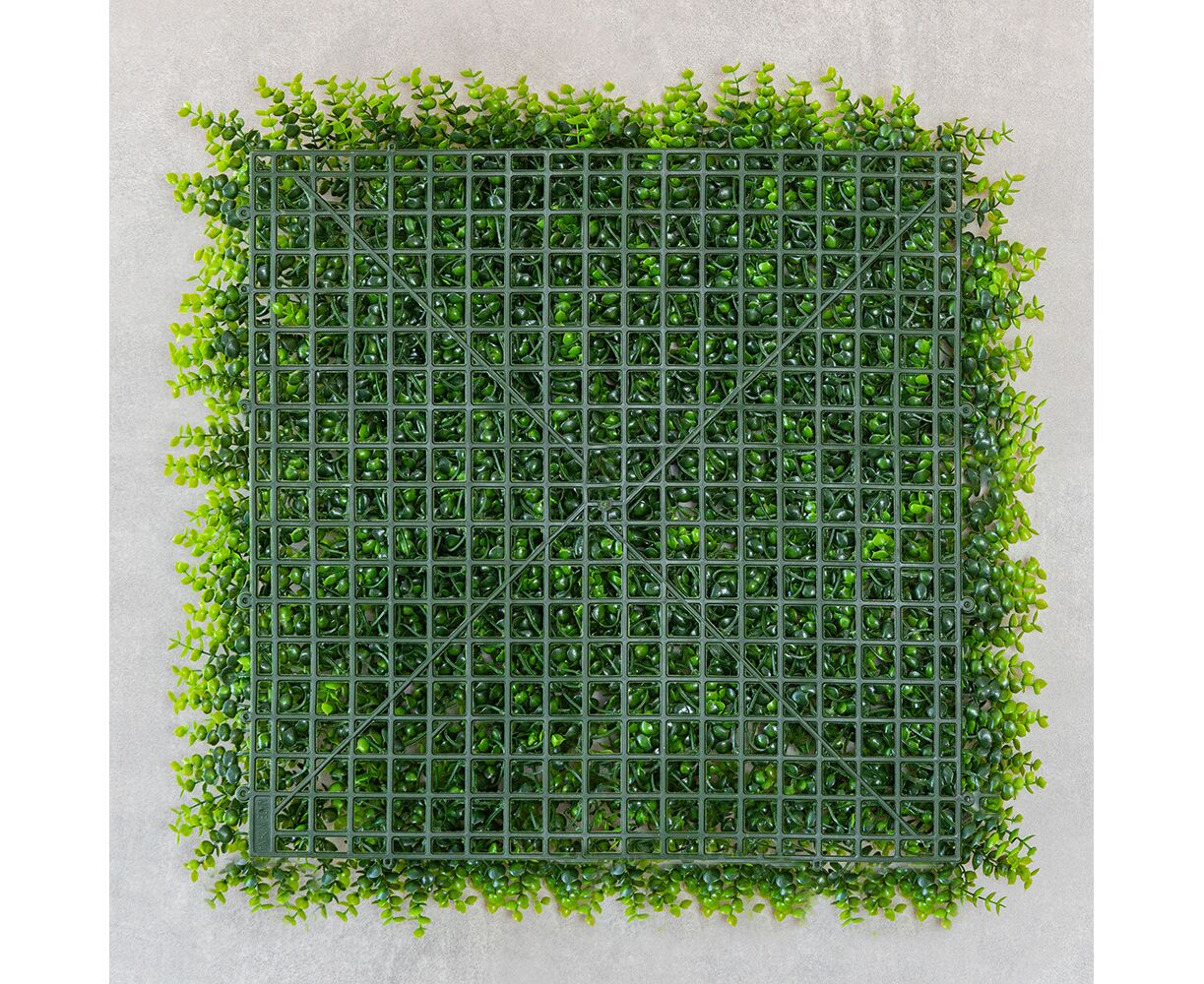 Длина панели – 50 см, ширина – 50 см, высота – 7 см. Декоративная панель из искусственной зелени – стильное решение для вертикального или горизонтального озеленения любого пространства. Реалистичные листья разных оттенков и текстур создают эффект живой растительности, придавая интерьеру свежести и природной гармонии. Фитомодуль имеет крепкую пластиковую основу с клипсами по краям, благодаря чему несколько элементов легко соединяются между собой в большую зеленую стену. Подходит для оформления интерьеров, витрин, фотозон, террас, зон отдыха, кафе, ресторанов и офисов. Может использоваться в помещении или на улице под накрытием, не требует ухода, не выцветает и сохраняет цвет в течение длительного времени. Идеальный вариант для тех, кто хочет создать атмосферу природы без усилий.