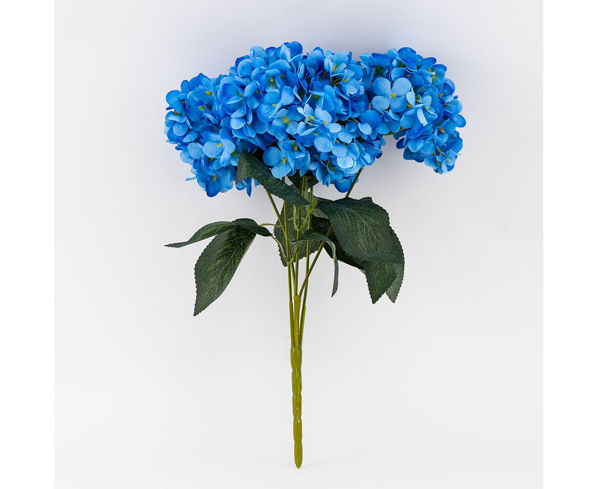 Букет гортензий, 5 бутонов, голубой, 44 см