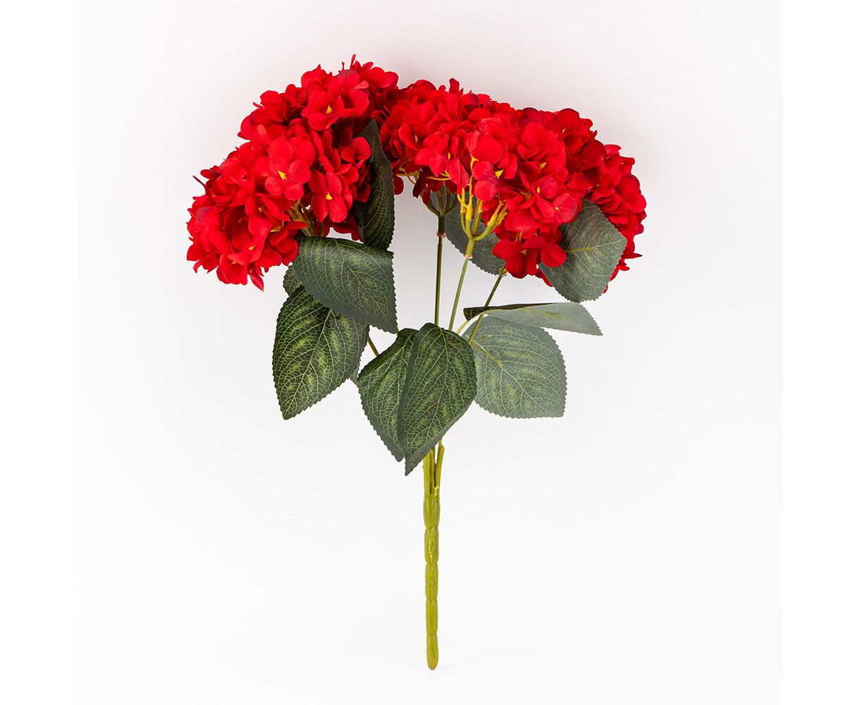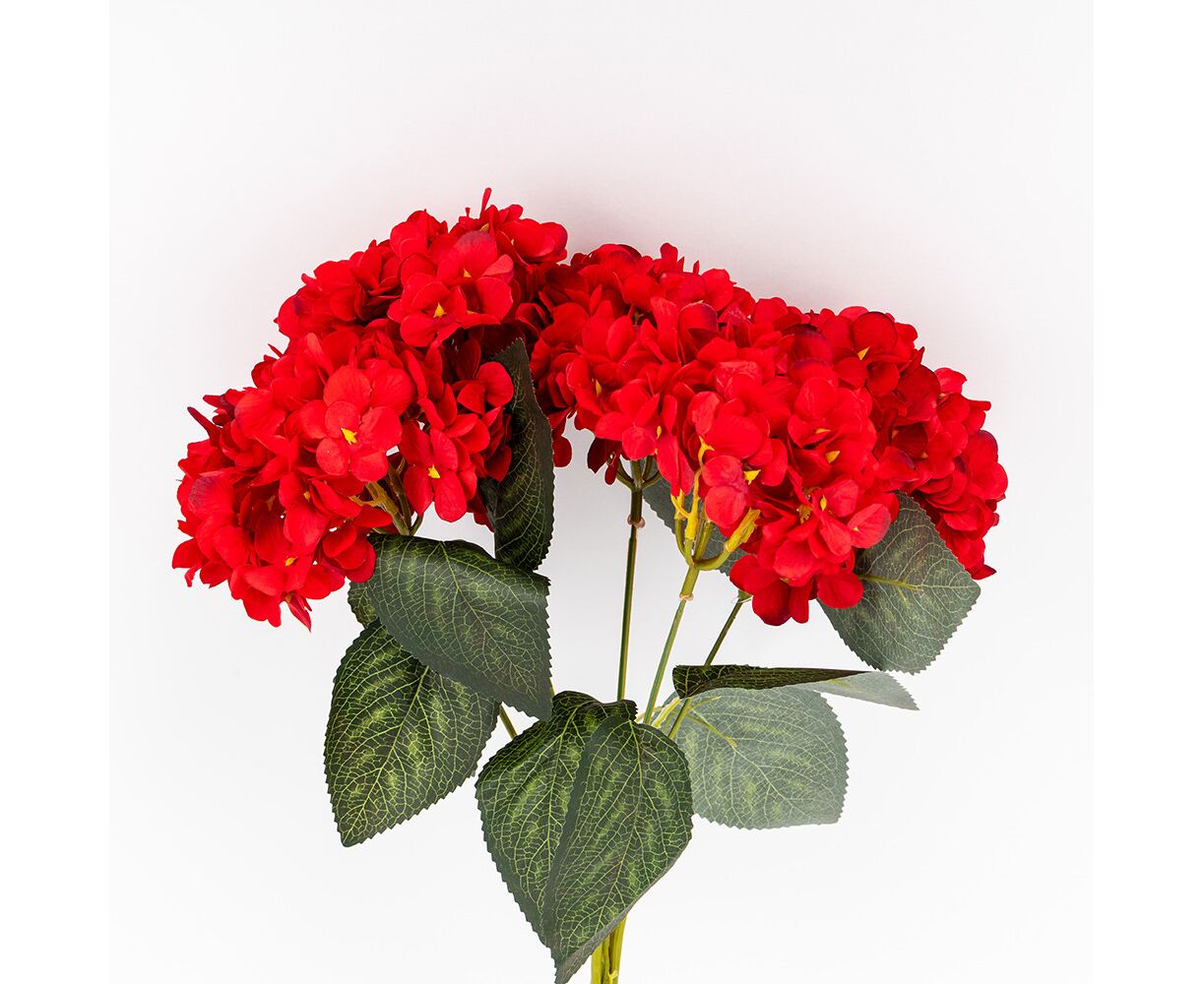 Букет гортензий, 5 бутонов, красный, 44 см