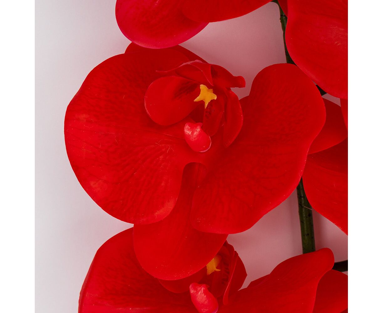 Высота – 95 см. Диаметр цветка – 10 см. Цветы выполнены из латекса, стебли – из пластика. Искусственная ветвь орхидеи с изящными лепестками и реалистичными бутонами придает элегантности любому интерьеру. Цветок имеет грациозные изгибы и детализированную текстуру, максимально приближенную к живому растению. Идеально подходит для декора витрин, ресторанов или фотозон.