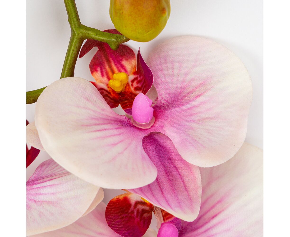 Цвет: Розовый Высота: 57 Материал: Тканина, пластик Ширина: 10 Высота – 57 см. Диаметр цветка – 10 см. Цветы выполнены из ткани, стебли – из пластика. Искусственная ветвь орхидеи с изящными лепестками и реалистичными бутонами придает элегантности любому интерьеру....