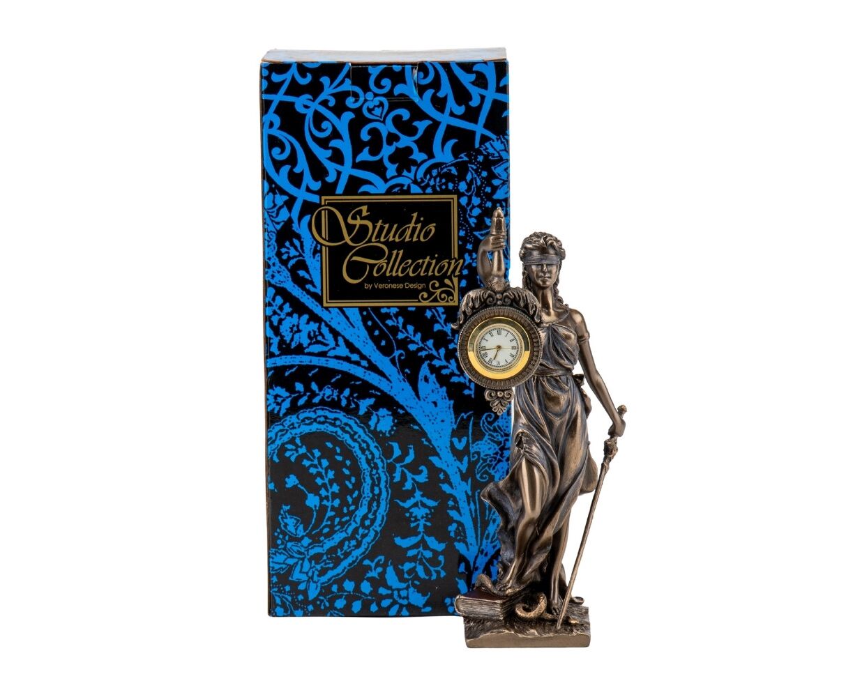Самая справедливая богиня – Фемида. Она является символом правосудия и законного порядка. Она блюстительница нравственных основ и всего строя жизни. Часы с изображением Фемиды, станут отличным подарком судье, адвокату, нотариусу, преподавателю права и всем, кто так или иначе связан с правосудием. Такие часы займут достойное место в кабинете служителя праву. Часы изготовлены из полистоуна (искусственного камня) и покрыта бронзовым напылением. Упакована в красивую подарочную упаковку. Так что, покупая эту статуэтку вы покупаете ценный и красивый подарок, не требующий дополнения. VERONESE