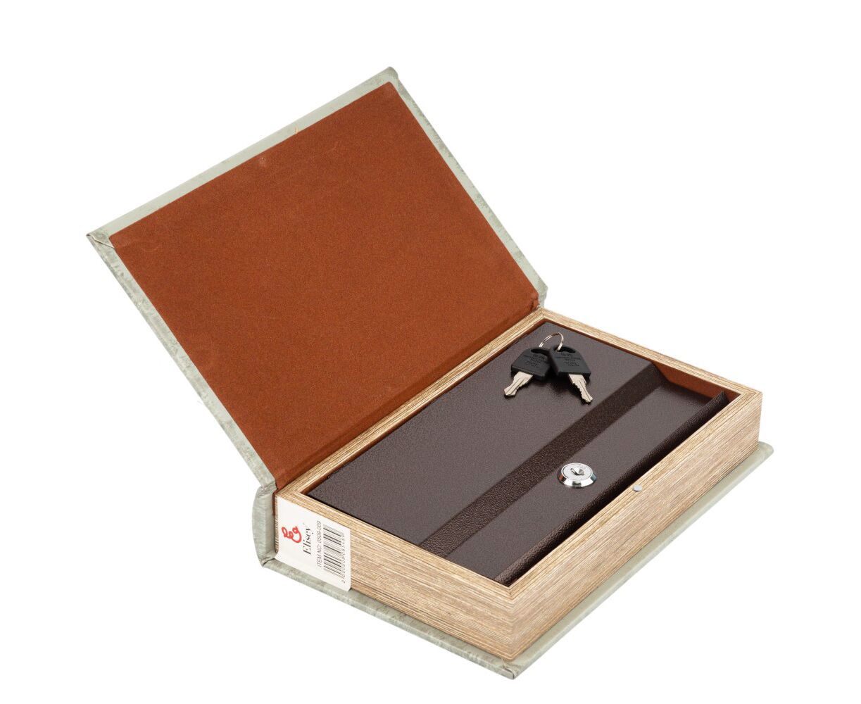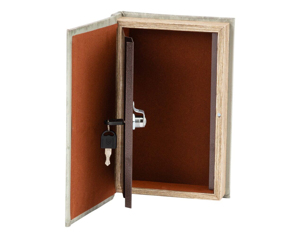 Высота - 26 см, длина - 17 см, ширина - 5 см. Книга-сейф – это креативный интерьерный элемент, который выглядит как обычная книга, но фактически имеет внутреннее хранилище. Это скрытая система хранения денег, документов или других ценных вещей. Внутри сейф закрывается на замок компактными ключами, которые легко можно спрятать в укромном месте. Это не только функциональная и полезная в повседневной жизни вещь, но и непревзойденный, уникальный вид. Благодаря своему внешнему виду, книга-сейф легко вписывается в книжную полку и дополняет любой интерьер. Отличный подарок для друзей и коллег.