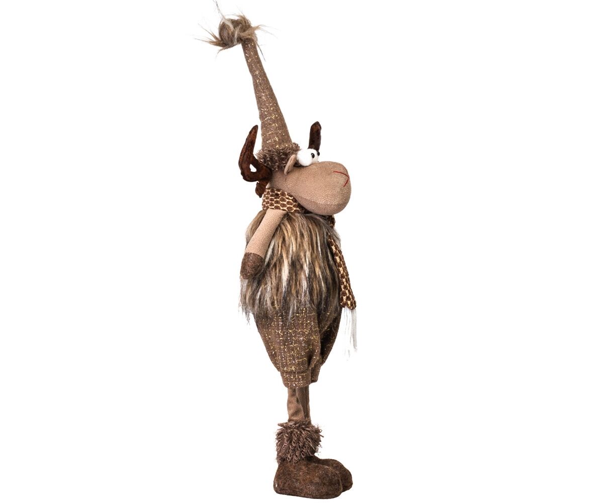 Высота – 65 см, длина – 16 см, объем – 15 см. Мягкая текстильная новогодняя игрушка – это волшебный декор для праздничного интерьера, изготовленный из мягких и приятных на ощупь материалов. Нежные цвета и детали придают ей особый шарм и праздничное настроение. Игрушка идеально подходит для украшения елки, камина или использования в качестве подарка, что принесет радость и уют в каждый дом. Фигурка стойко стоит.