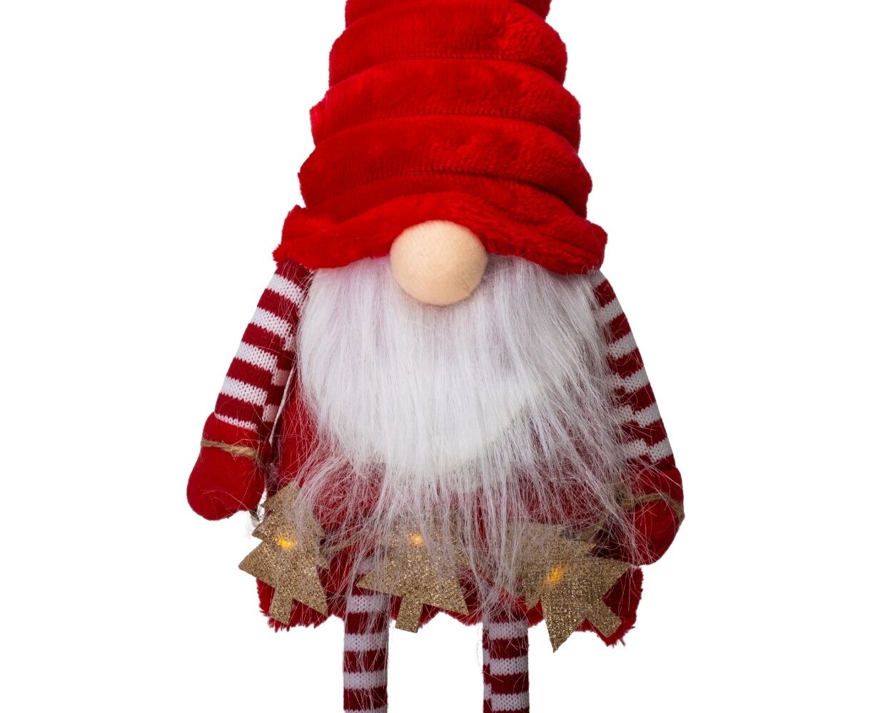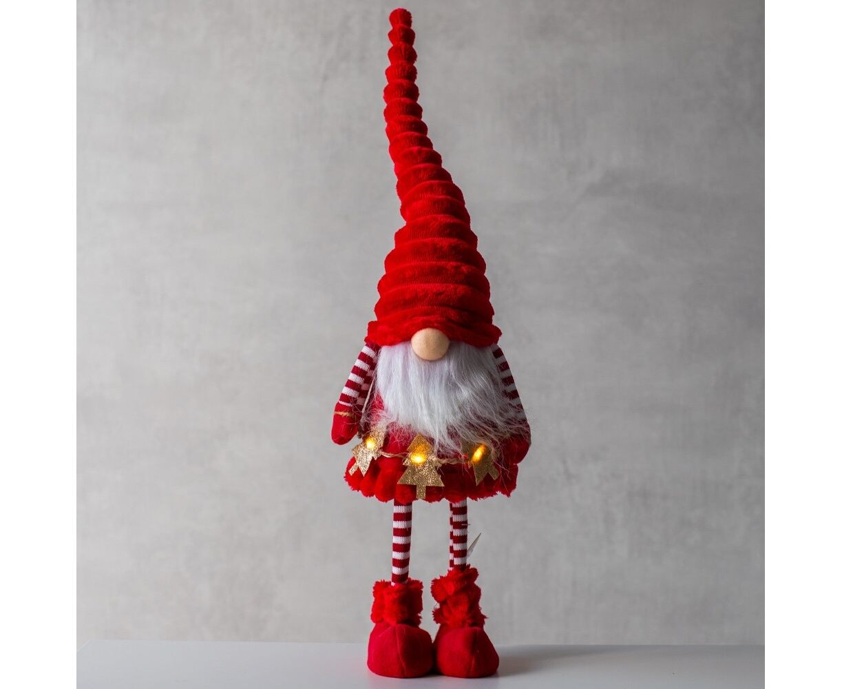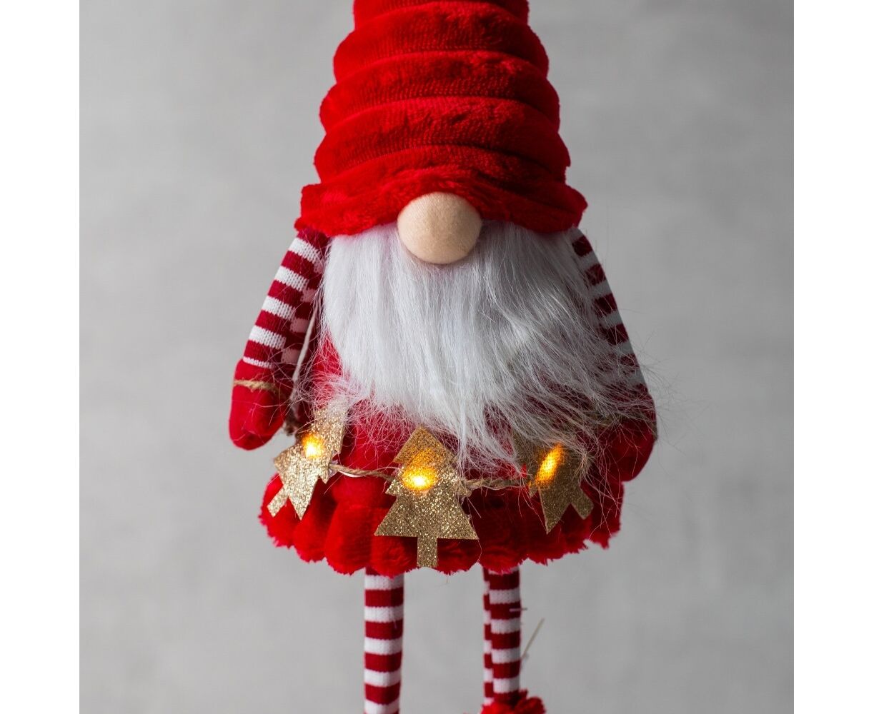 Фигурка на пружине, благодаря чему пошатывается. Гирлянда в гномике с подсветкой. Мягкая текстильная новогодняя игрушка – это волшебный декор для праздничного интерьера, изготовленный из мягких и приятных на ощупь материалов. Нежные цвета и детали придают ей особый шарм и праздничное настроение. Игрушка идеально подходит для украшения елки, камина или использования в качестве подарка, что принесет радость и уют в каждый дом. Фигурка стойко стоит.