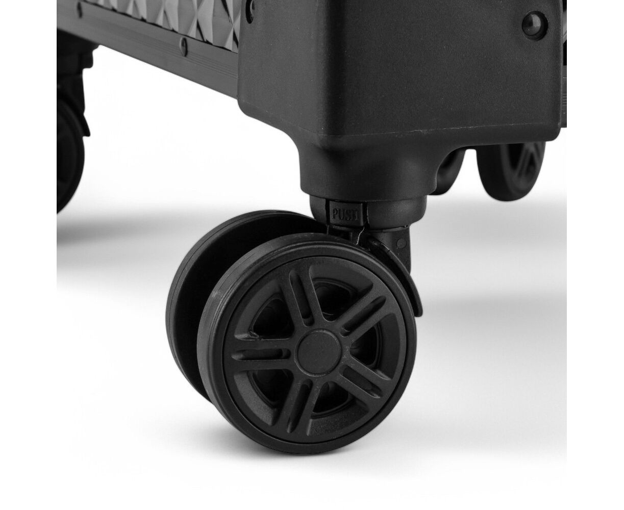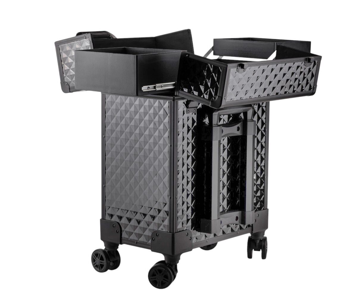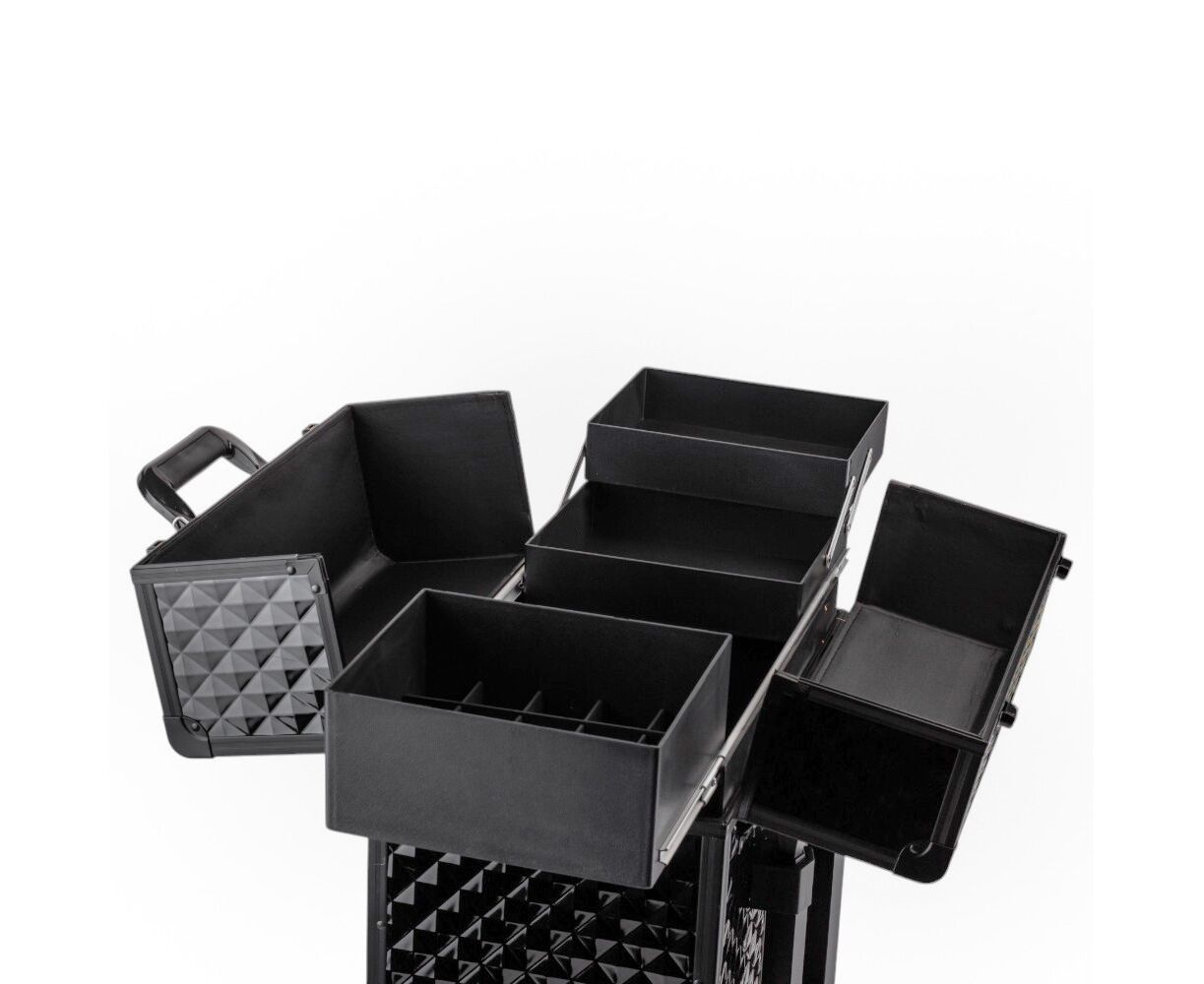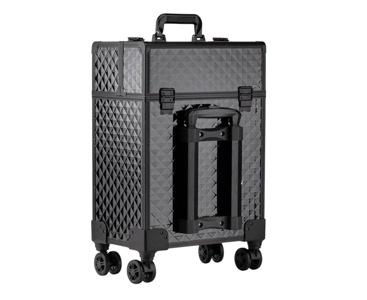 Высота с колесиками – 58 см. Ширина в открытом состоянии – 55 см, длина – 83 см. Ручка поднимается на 2 высоты – 37 и 55 см. В комплекте 2 ключика. Этот косметический кейс-чемодан – идеальное решение для профессиональных визажистов, стилистов и всех, кто ценит порядок в косметических средствах. Оснащенный удобной выдвижной ручкой и надежными колесами, он обеспечивает легкость в транспортировке. Прочный корпус из пластика и металла защищает содержимое от повреждений, а многоуровневые выдвижные секции позволяют эффективно организовать хранение инструментов и косметики. Благодаря стильному дизайну и прочной конструкции этот кейс станет незаменимым аксессуаром для работы и путешествий.