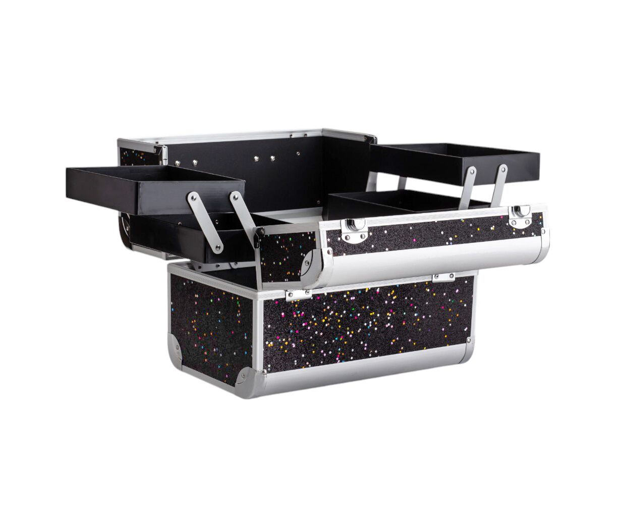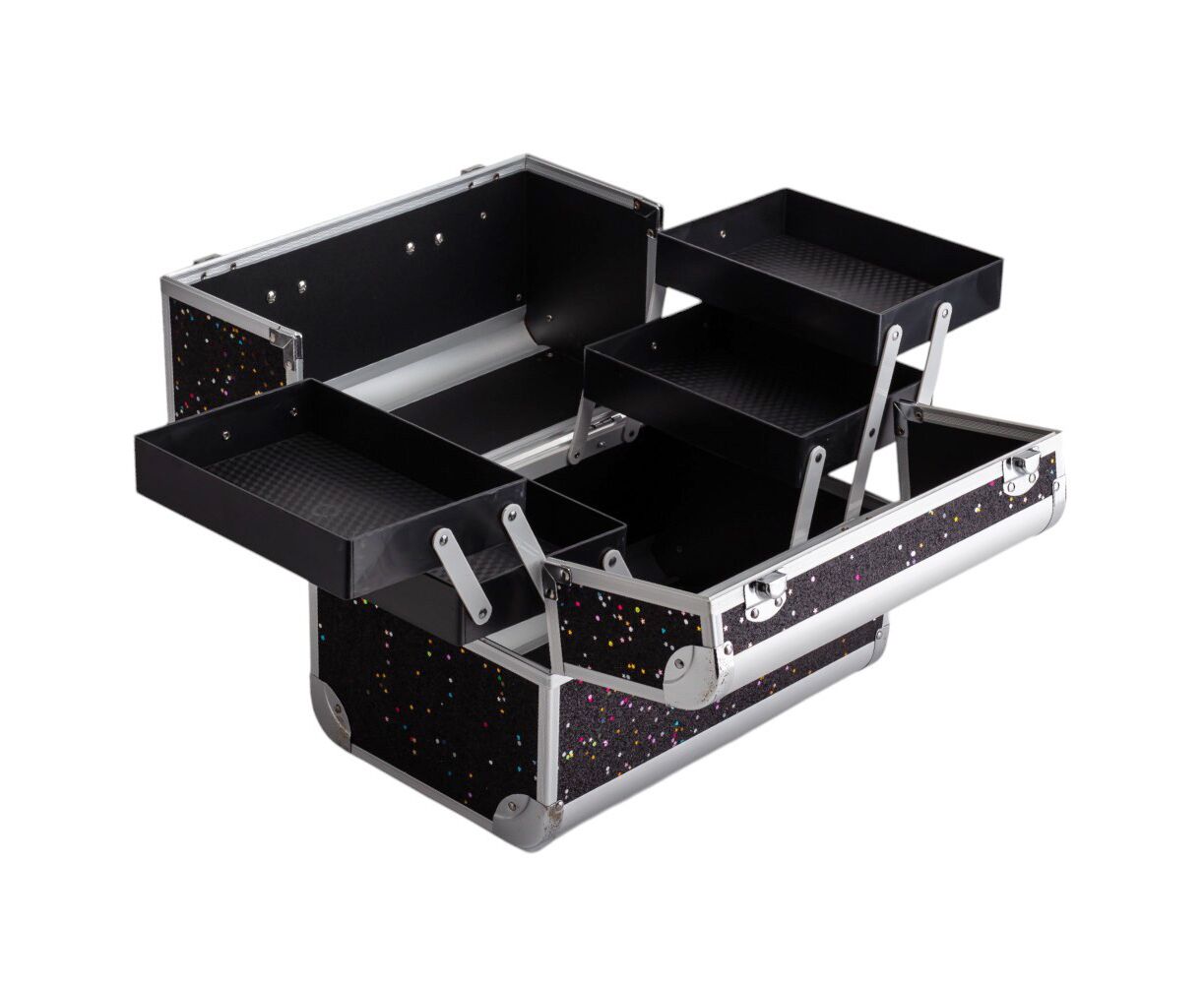 Крепкий и стильный косметический кейс изготовлен из сочетания пластика и металла, обеспечивает надежную защиту косметики и аксессуаров. Благодаря раскладной конструкции с несколькими уровнями организации этот кейс позволяет удобно разместить все необходимые инструменты и средства для макияжа. Металлические замки гарантируют безопасность содержимого, а удобная ручка делает транспортировку легкой и комфортной. Идеальный выбор для визажистов, мастеров маникюра или просто для организованного хранения косметики на дому.
