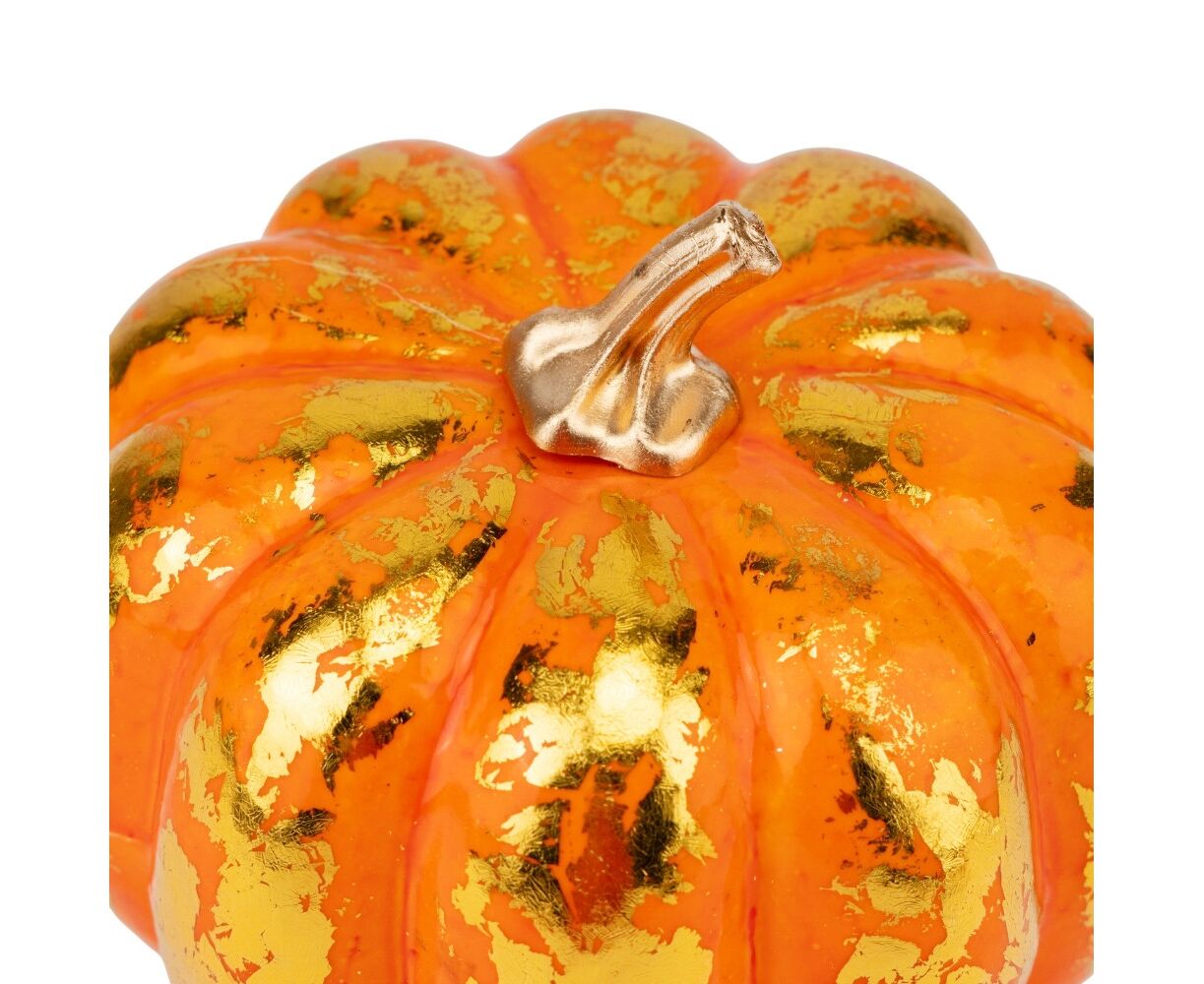 Декоративная тыква “Золотой блеск”, высота - 14 см. Стильный акцент для осеннего или праздничного декора. Тыква изготовлена из прочного материала с эффектом позолоты, создающим ощущение роскоши и уюта. Благодаря изысканному сочетанию насыщенного оранжевого оттенка с золотистыми деталями этот элемент гармонично дополнит интерьер, фотозону или праздничную композицию. Идеально подходит для HoReCa-проектов и декора дома.