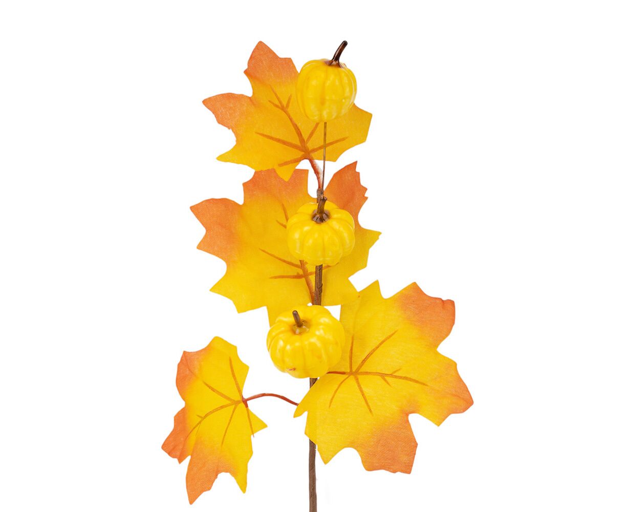 Искусственная ветка "Золотая листва". Высота 32 см, отличается яркими жёлто-оранжевыми оттенками листьев, которые придают композициям тепло и солнечный свет. Хорошо сочетается с другими искусственными цветами и ветками.