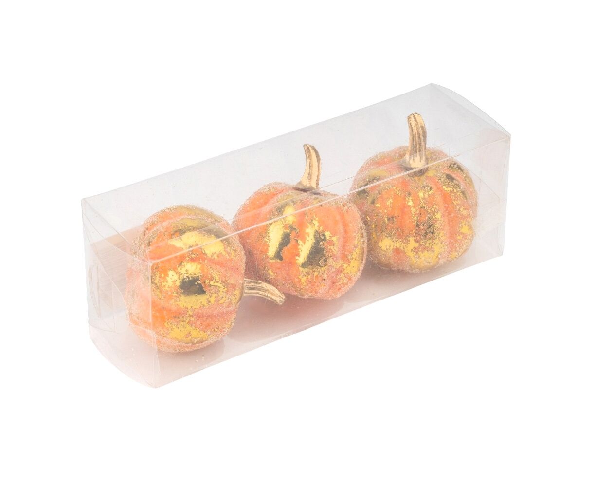 В наборе – 3 штуки. Высота – 7 см. Набор декоративных тыкв из пластика идеально подходит для создания осеннего декора дома или в заведении. Реалистичные цвета и формы тыкв помогут придать уюту любому интерьеру. Они отлично сочетаются с другими осенними элементами, подходят для украшения праздничных столов, фотозон или витрин. Этот набор станет стильным упором в вашем осеннем декоре.