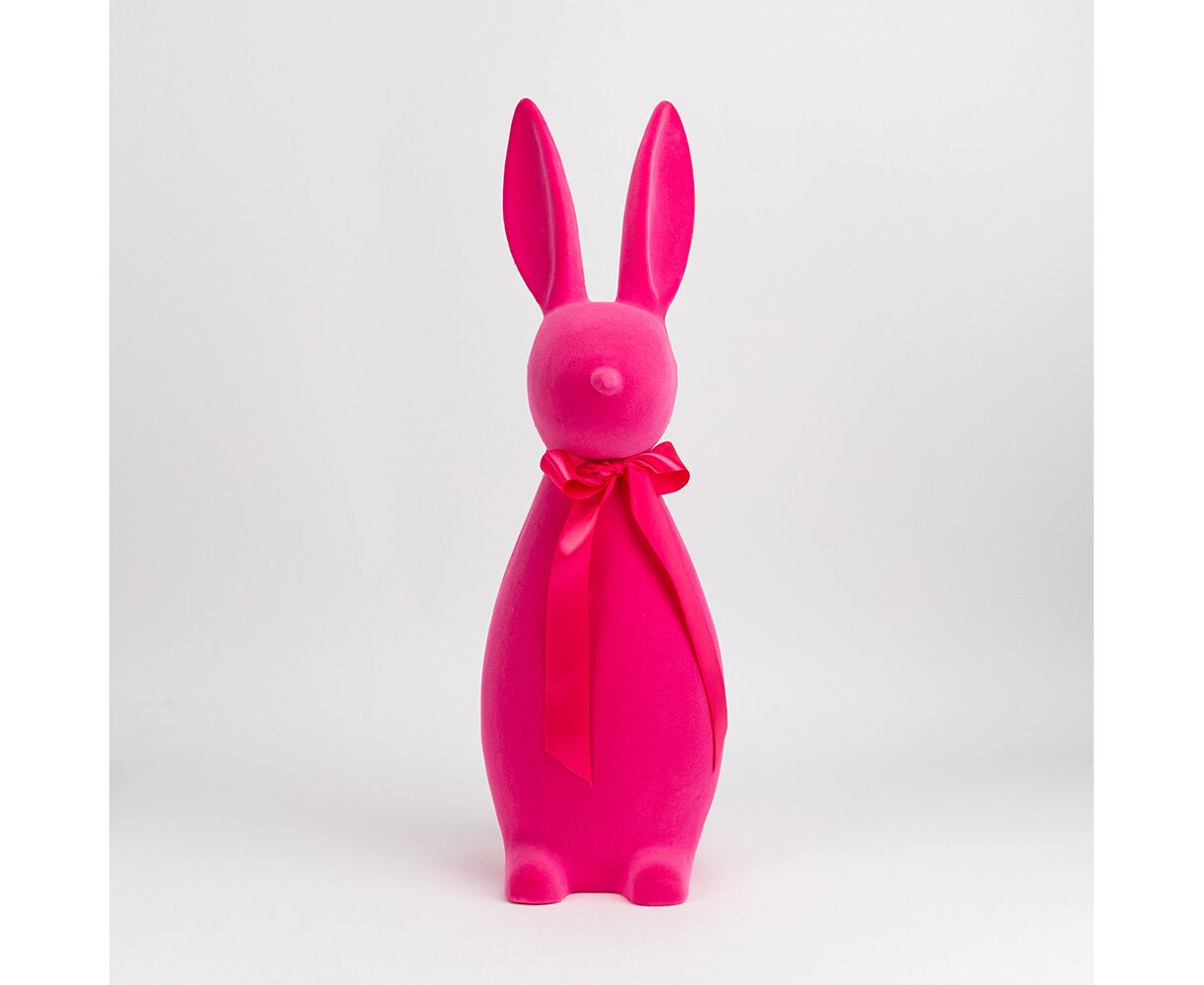 Фигурка флоковая "Пасхальный зайчик", розовая, 70 см