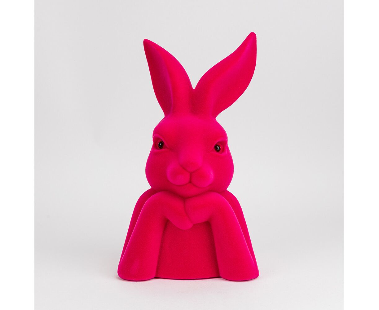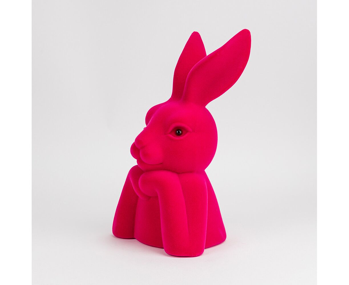 Фигурка флоковая "Пасхальный зайчик", темно-розовая, 40 см