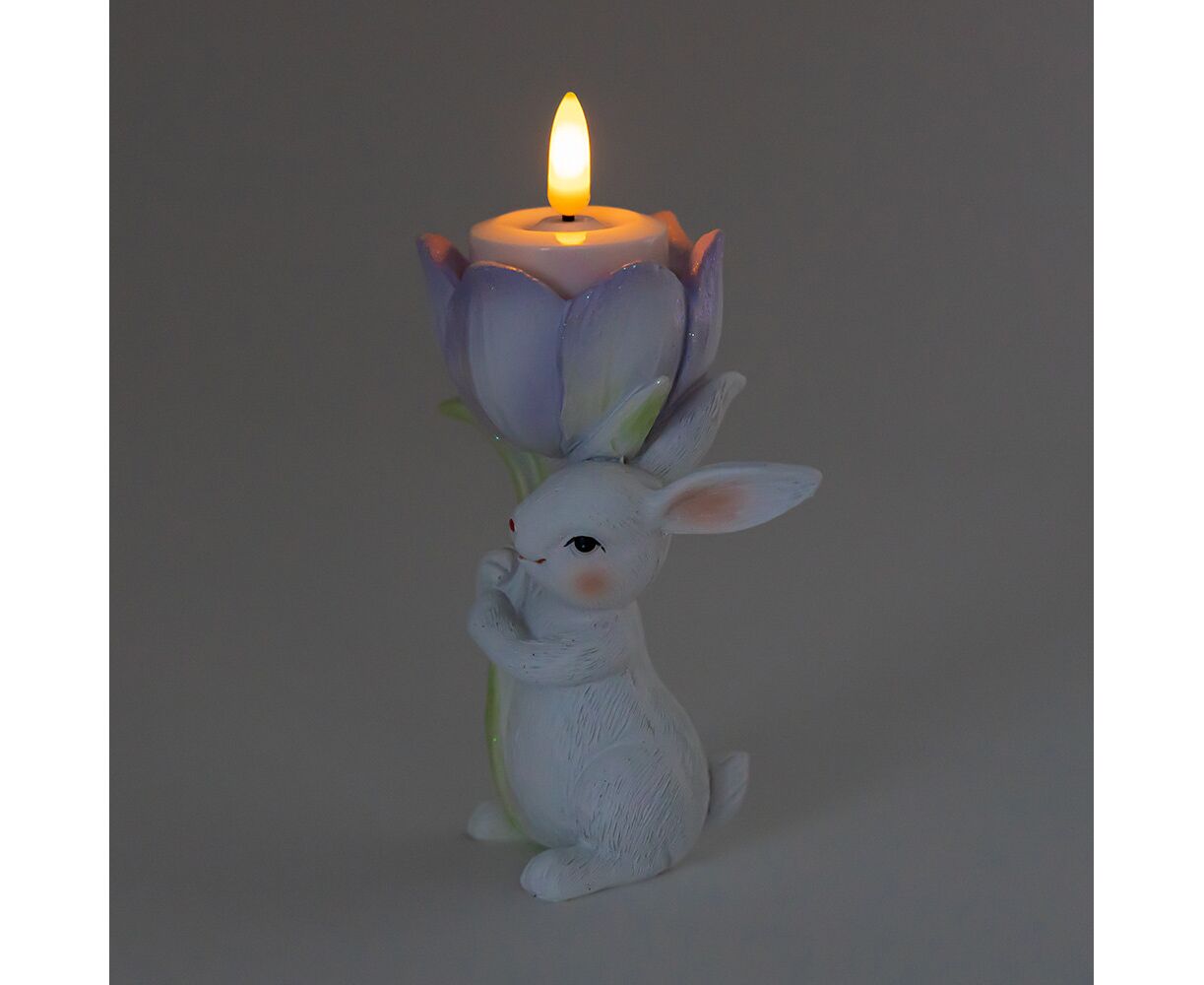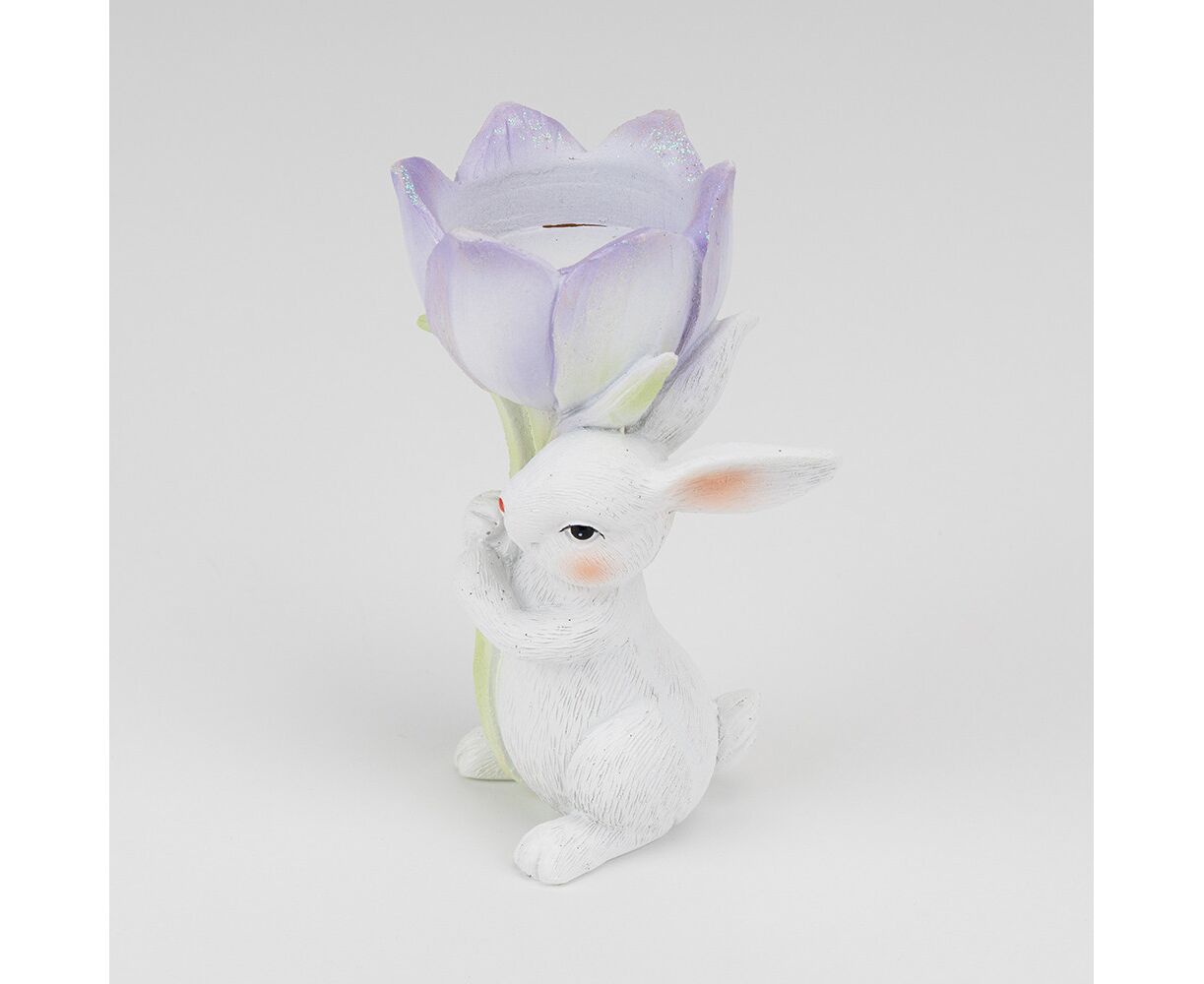Подсвечник "Кролик с фиолетовым тюльпаном", 12,5 см