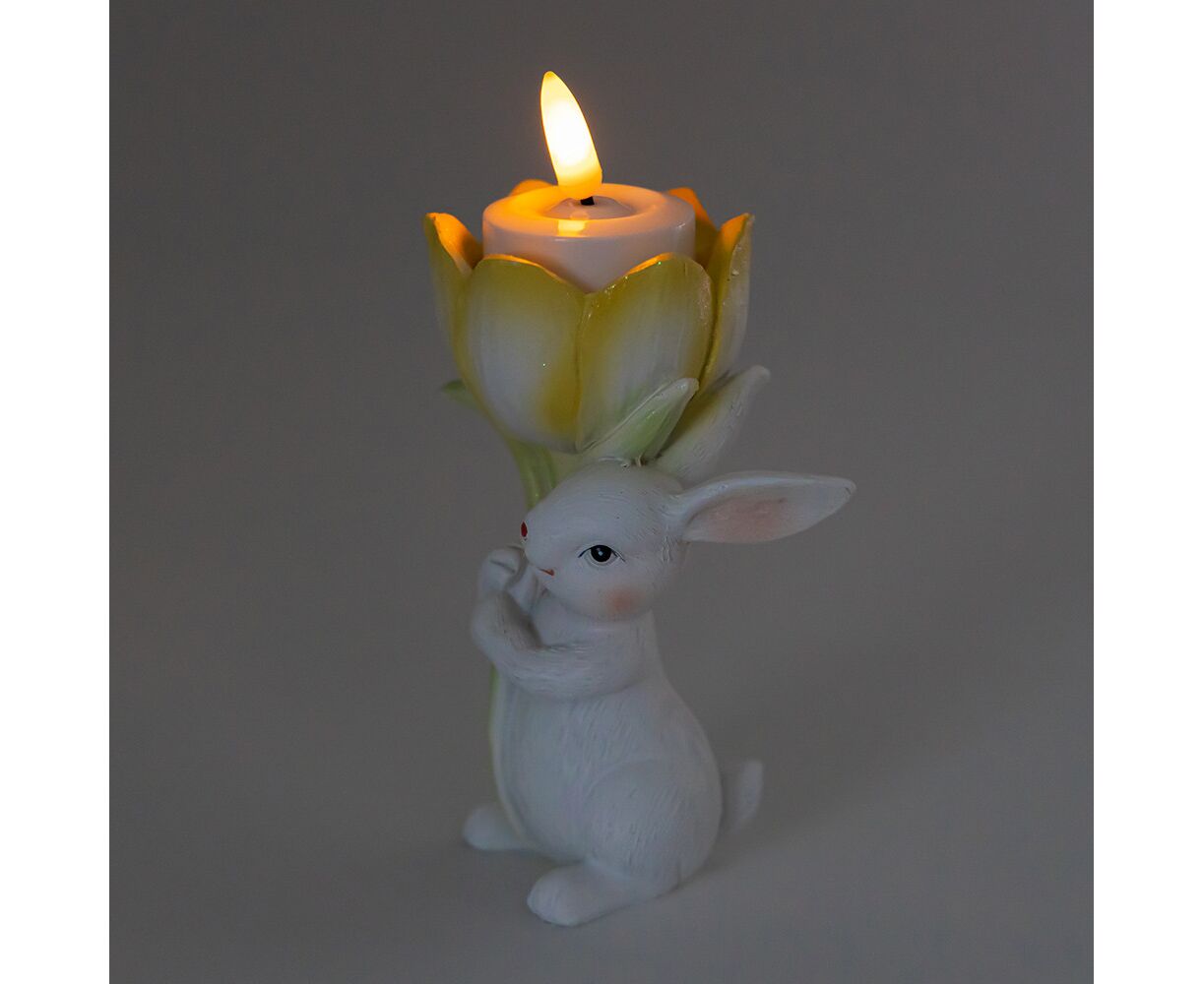 Подсвечник "Кролик с желтым тюльпаном", 12,5 см