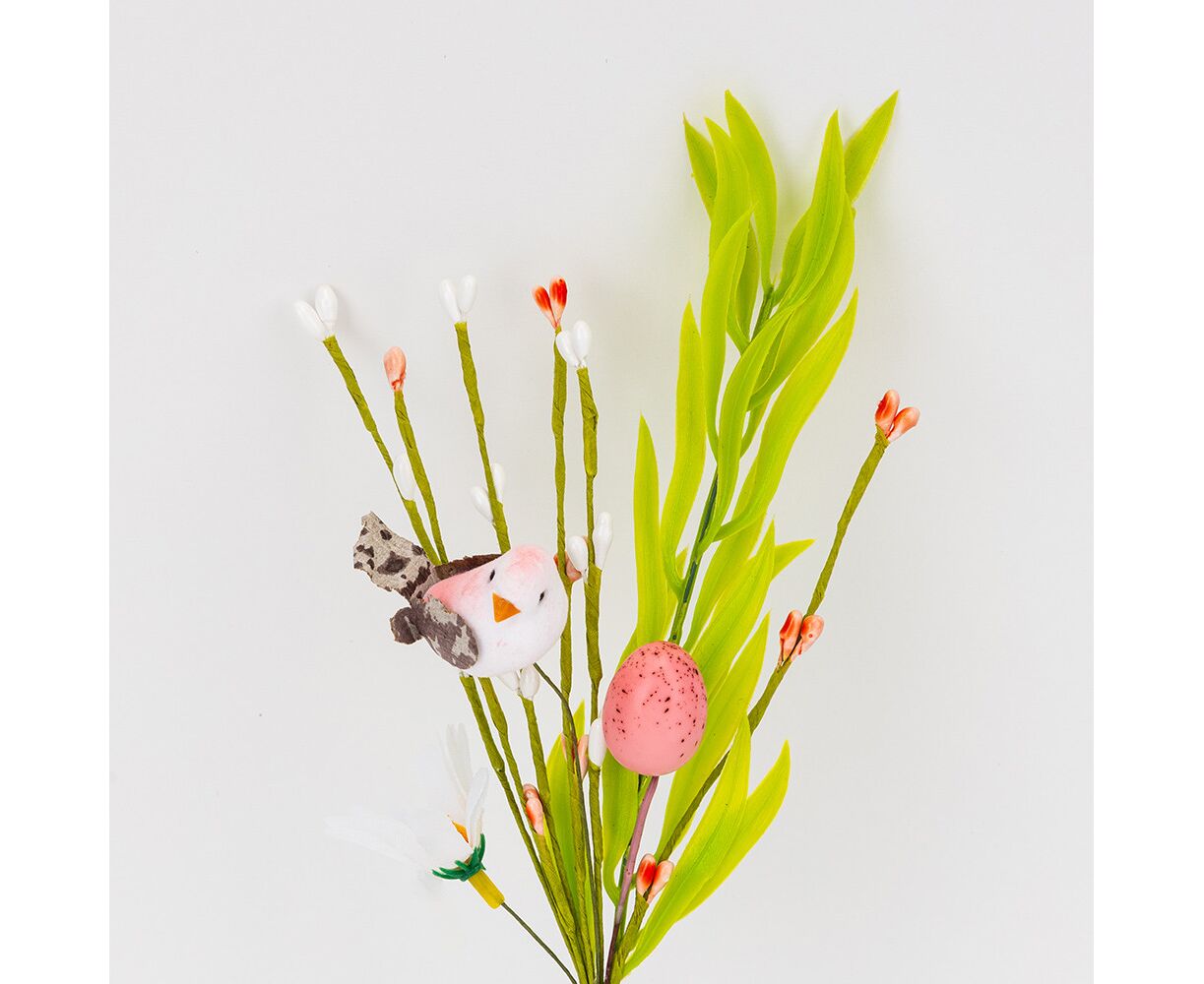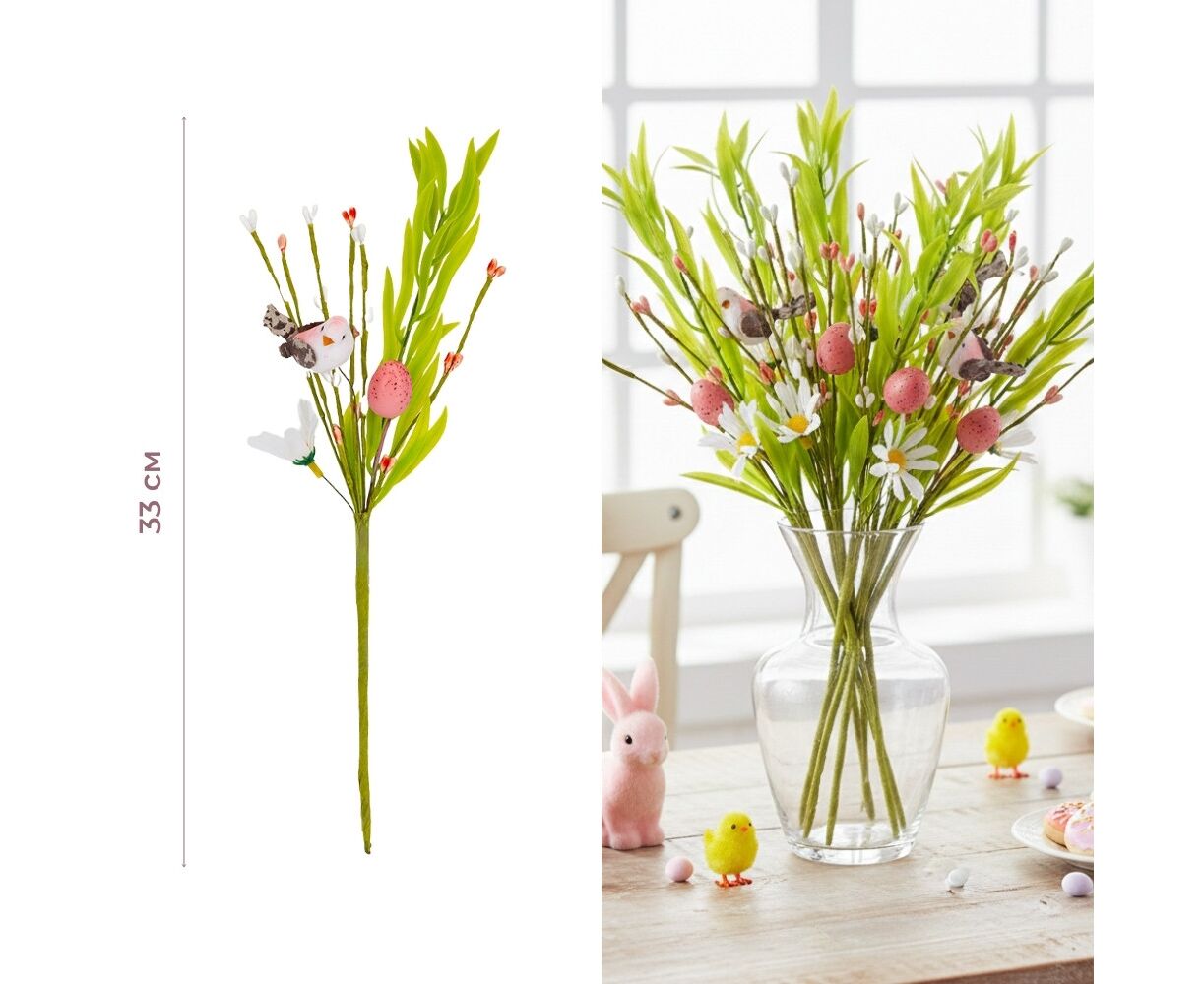 Пасхальная декоративная веточка "Птичка и крашанка", 33 см