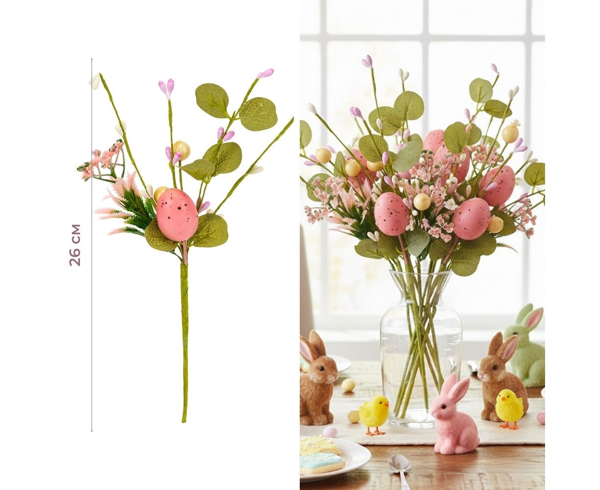 Пасхальная декоративная веточка "Розовая крашанка с ягодами", 26 см