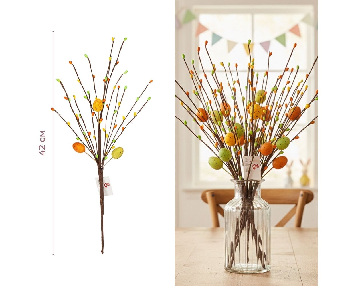 Пасхальная декоративная веточка с крашанками, 42 см