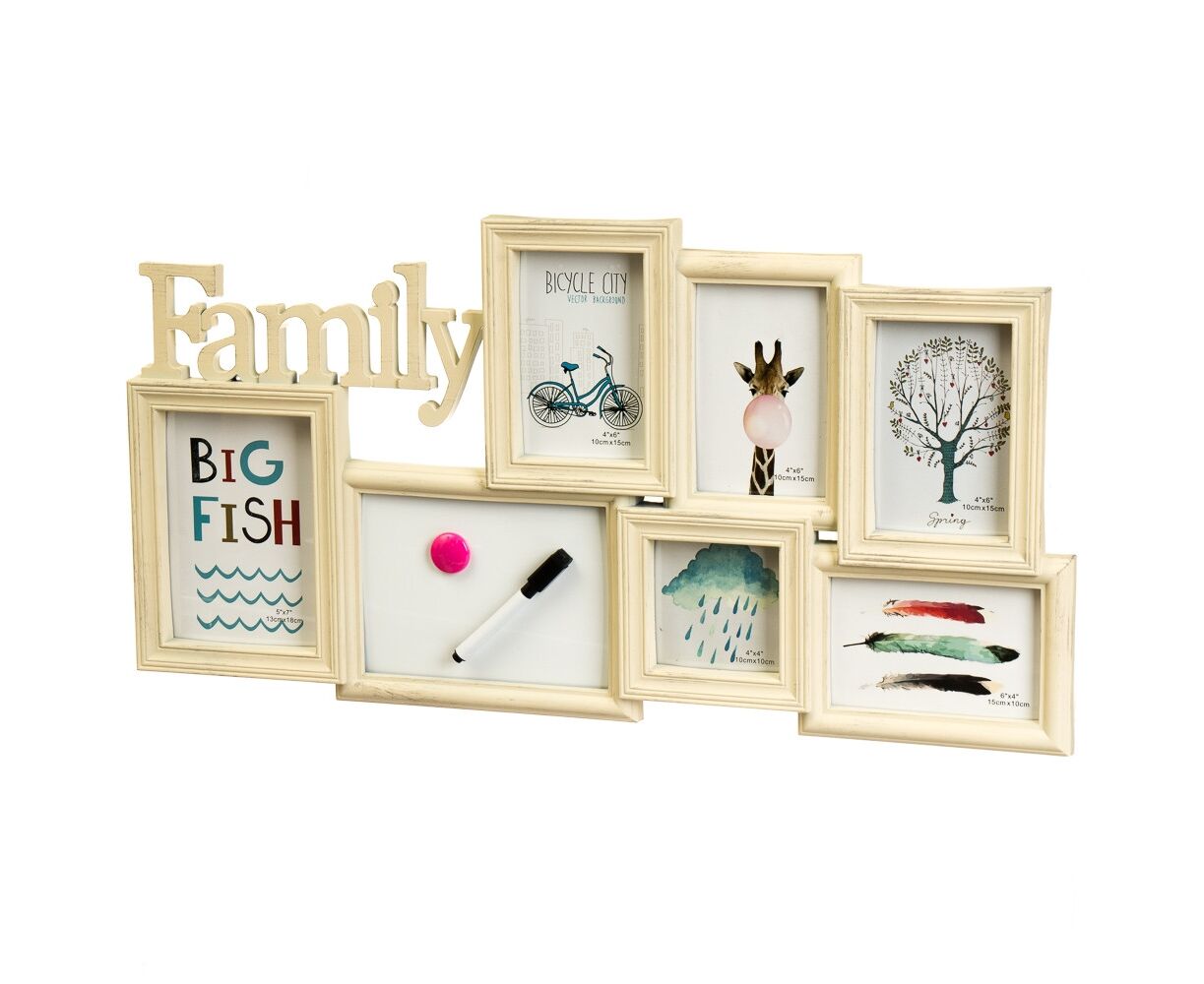 Фотоколлаж 66x35x2,5см Цвет: Белый Тип: Рамка Функциональное назначение рамки: для фотографий Петля для крепления к стене: Да Материал защитного экрана рамки: стекло Размещение рамки: горизонтальное Материал багета: Пластик Предоставляем вашему вниманию ассортимент товара: