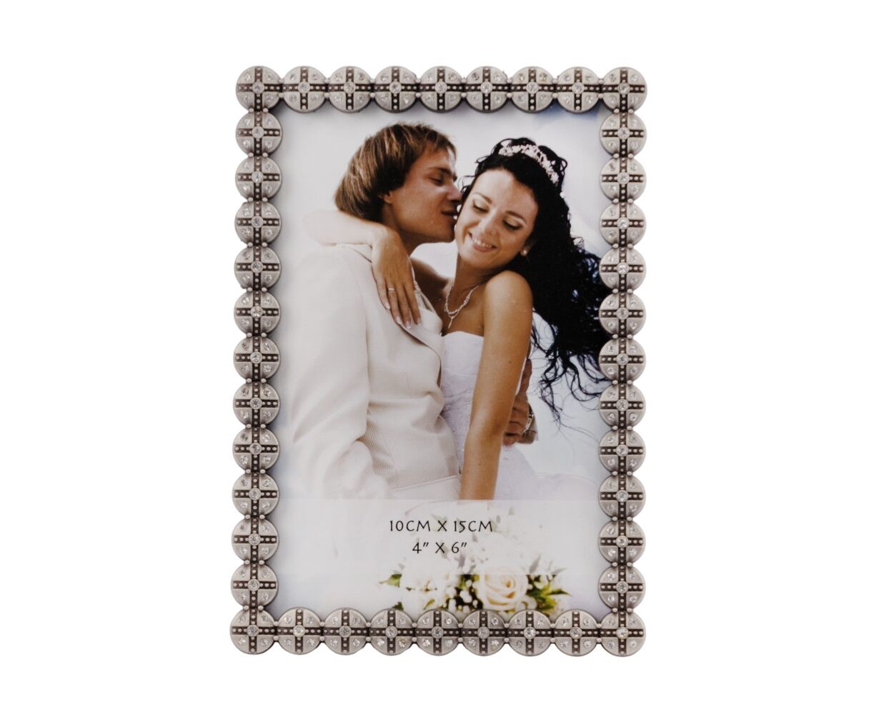 Фоторамка "Кристаллики красивейшая фоторамка стального цвета инкрустирована сверкающими кристаллами. Такая фоторамка именно то, что нужно для достойного обрамления свадебных фото. Влюбленные взгляды счастливой пары, красивое белое платье невесты, первый трепетный танец молодой семьи. Волшебный день свадьбы – день рождения семьи. Такие эмоции должны быть запечатлены на фото. Это не просто фоторамка, это идеальный подарок для близкого человека. Она также подойдет на подарок молодоженам, или супруге на годовщину. Им точно понравиться такой знак внимания и на долго сохранить теплые воспоминания.
