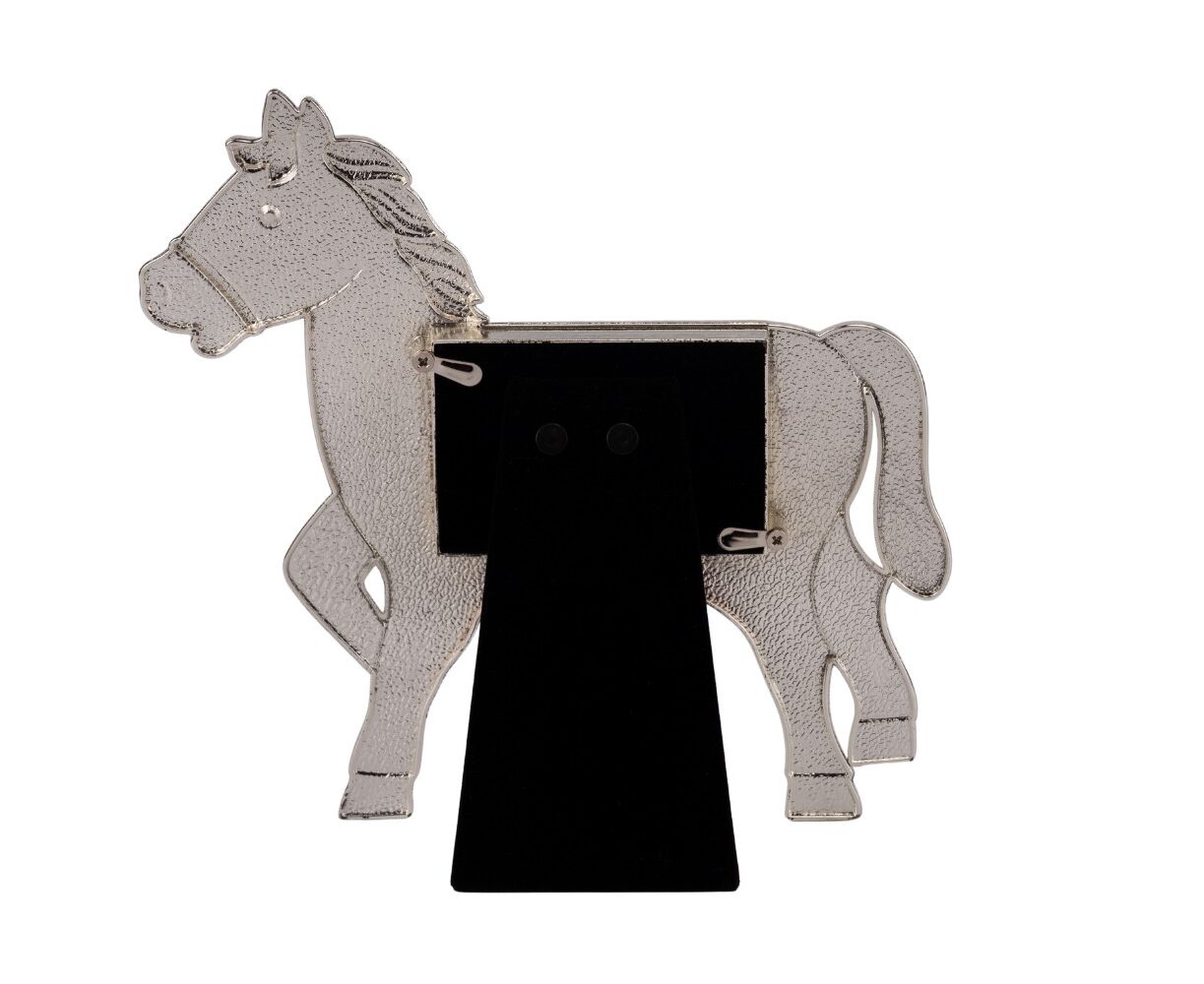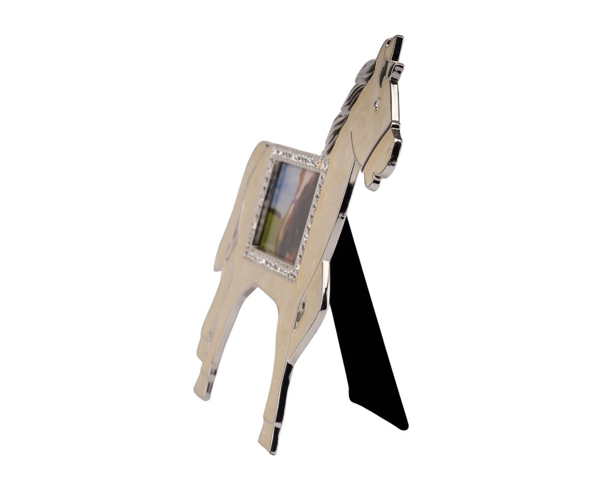 Конь – животное благородное и занимает достойное место во многих религиях и верованиях. Скакун рвущийся вперед символизирует смелость, упорство и отвагу. Это сильный талисман, помогающий обрести уверенность и достичь желаемого в своих начинаниях. Фоторамка "Лошадка" выполнена в виде коня и инкрустирована сверкающими кристаллами. Такая фоторамка станет отличным подарком подруге, дочке, маме, бабушке, коллеге.