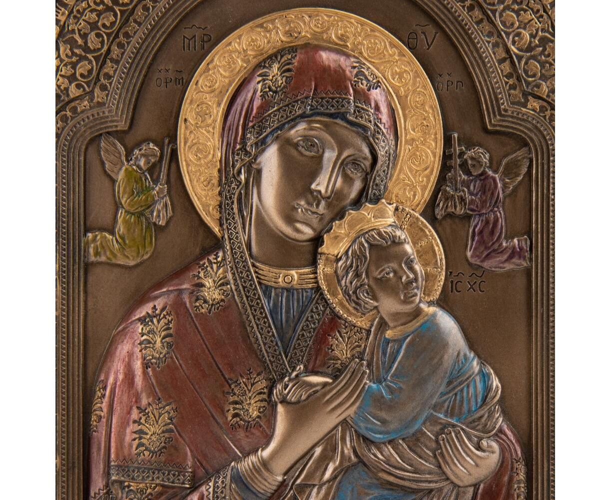 Картина "Матерь Божья" с детальной проработкой деталей никого не оставит равнодушным и может быть драгоценным и духовным подарком для верующих людей, которые верят в христианскую религию и ценят это символическое изображение. Картина изготовлена из полистоуна (искусственного камня) и покрыта бронзовым напылением. Упакована в красивую подарочную коробку. Поэтому покупая эту статуэтку, Вы получаете ценный и красивый подарок, который не требует дополнения. Благодаря надежной внутренней упаковке, изготовленной из пенопласта с углублениями для самых маленьких деталей, Вы можете быть уверенными в безопасности при транспортировке. Высота картины - 23 см, ширина - 15,5 см, длина - 1,3 см. VERONESE