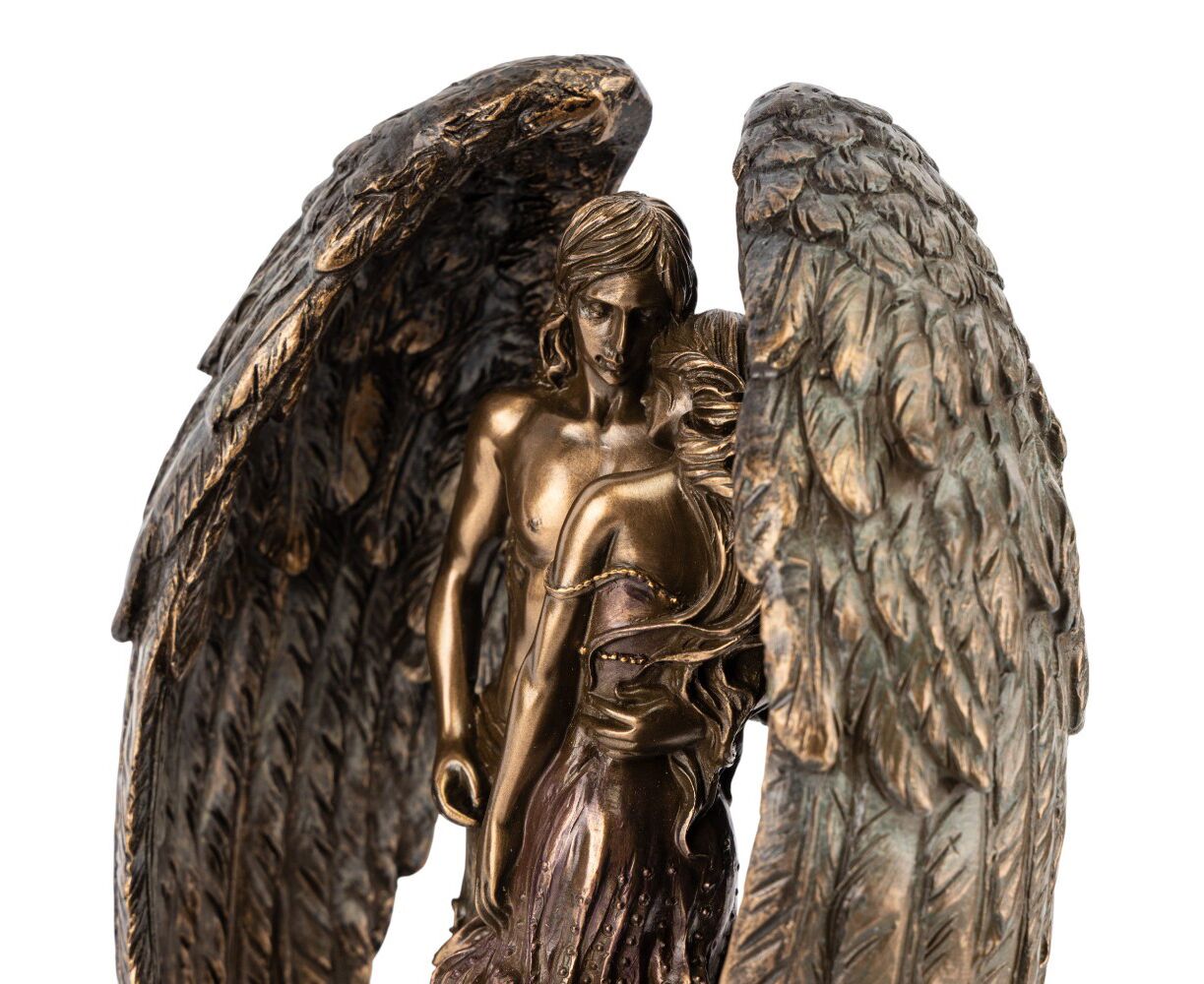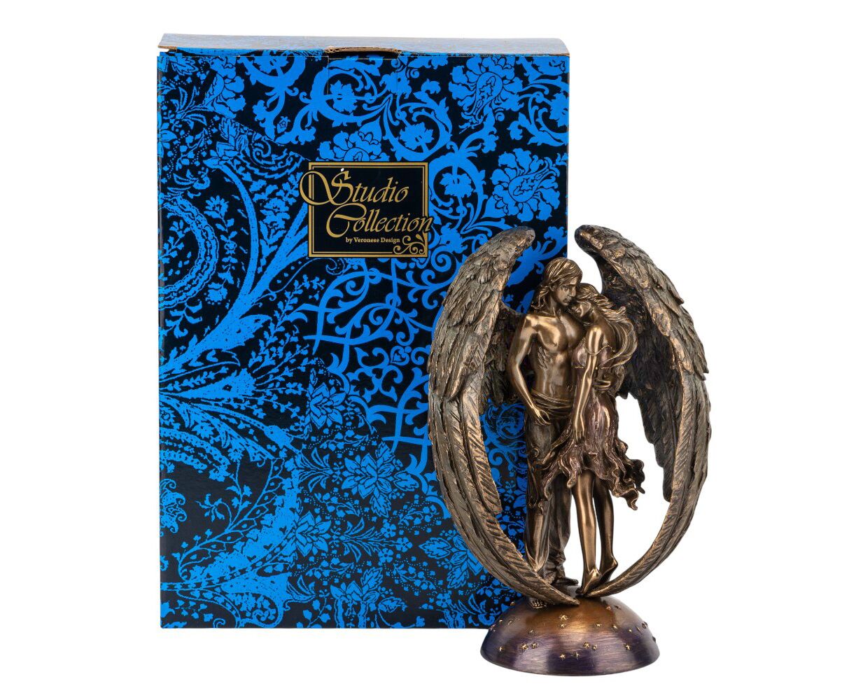 Высота статуэтки – 25 см, длина – 16 см, ширина – 10 см. Статуэтка Veronese изготовлена ​​из полистоуна – искусственного камня. Упакована в подарочную коробку. Упаковка из пенопласта с индивидуальными углублениями для каждого элемента обеспечивает максимальную защиту товара при транспортировке. Эта утонченная статуэтка символизирует чистое и защищенное чувство — не знающая границ любви. Фигуры влюбленных, объятые величественными крыльями ангела, передают нежность и доверие, которое может подарить только настоящая любовь. Тонкое бронзовое покрытие подчеркивает каждую деталь: от плавных линий тела до легкости пера. Это произведение станет элегантным символом гармонии, единства и духовной связи, возвышающейся над земным. VERONESE
