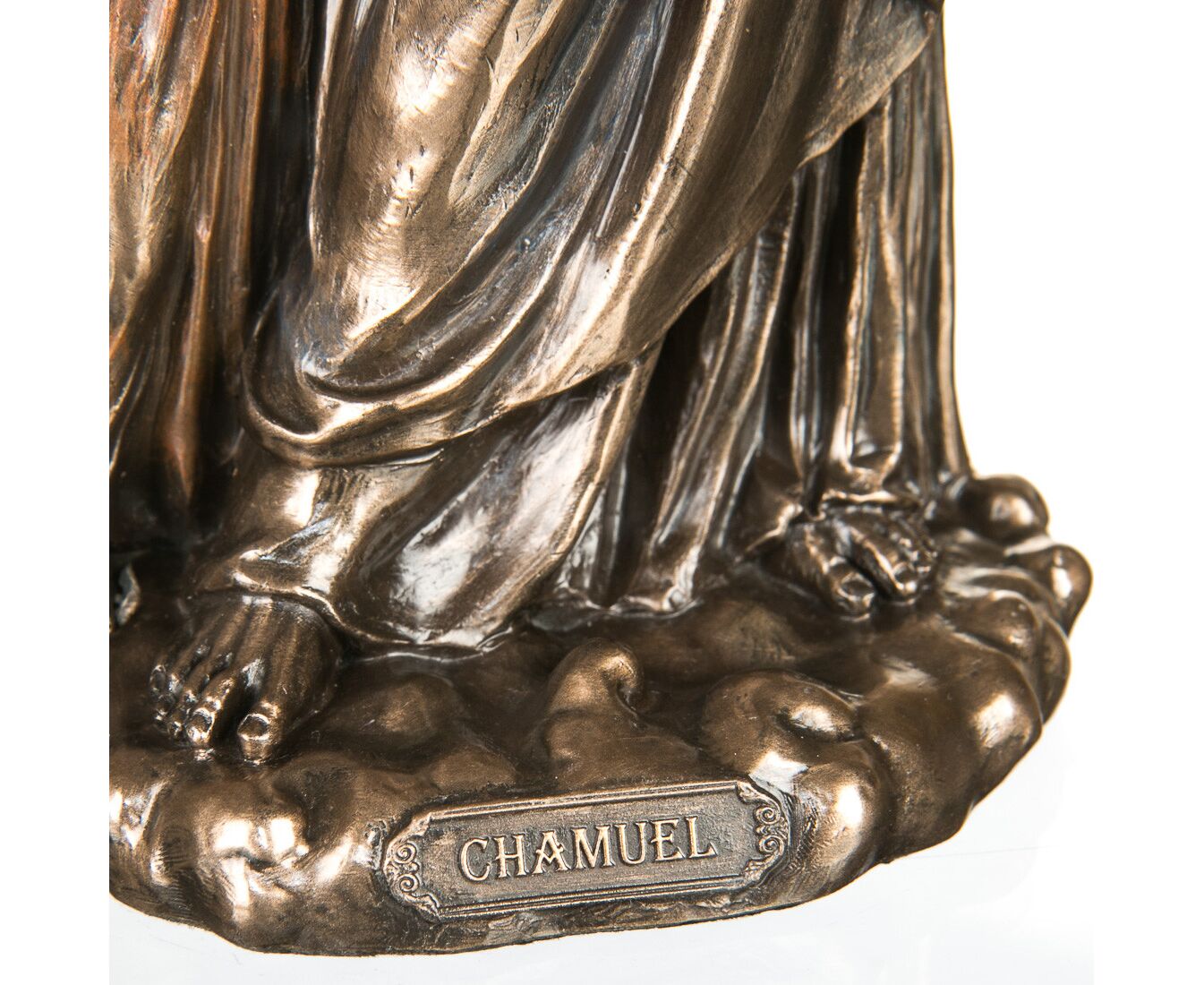 Архангел Чамуэль – защитник мира от плохой энергетики и существ, которые угрожают счастью и покою людей. Архангел дает чувство безопасности и надежду на спасение. Так же он оберегает личный мир каждого человека. Чамуэль дарует любовь, дружбу и уважение окружающих. Статуэтка с детальной проработкой деталей никого не оставит равнодушным и станет отличным подарком и оберегом на новоселье, религиозный праздник, день рождения, в знак благодарности или как утешение человеку которому нужна поддержка в сложную минуту. Статуэтка изготовлена из полистоуна (искусственного камня) и покрыта бронзовым напылением. Запакована в пенопласт и красивую подарочную упаковку. VERONESE