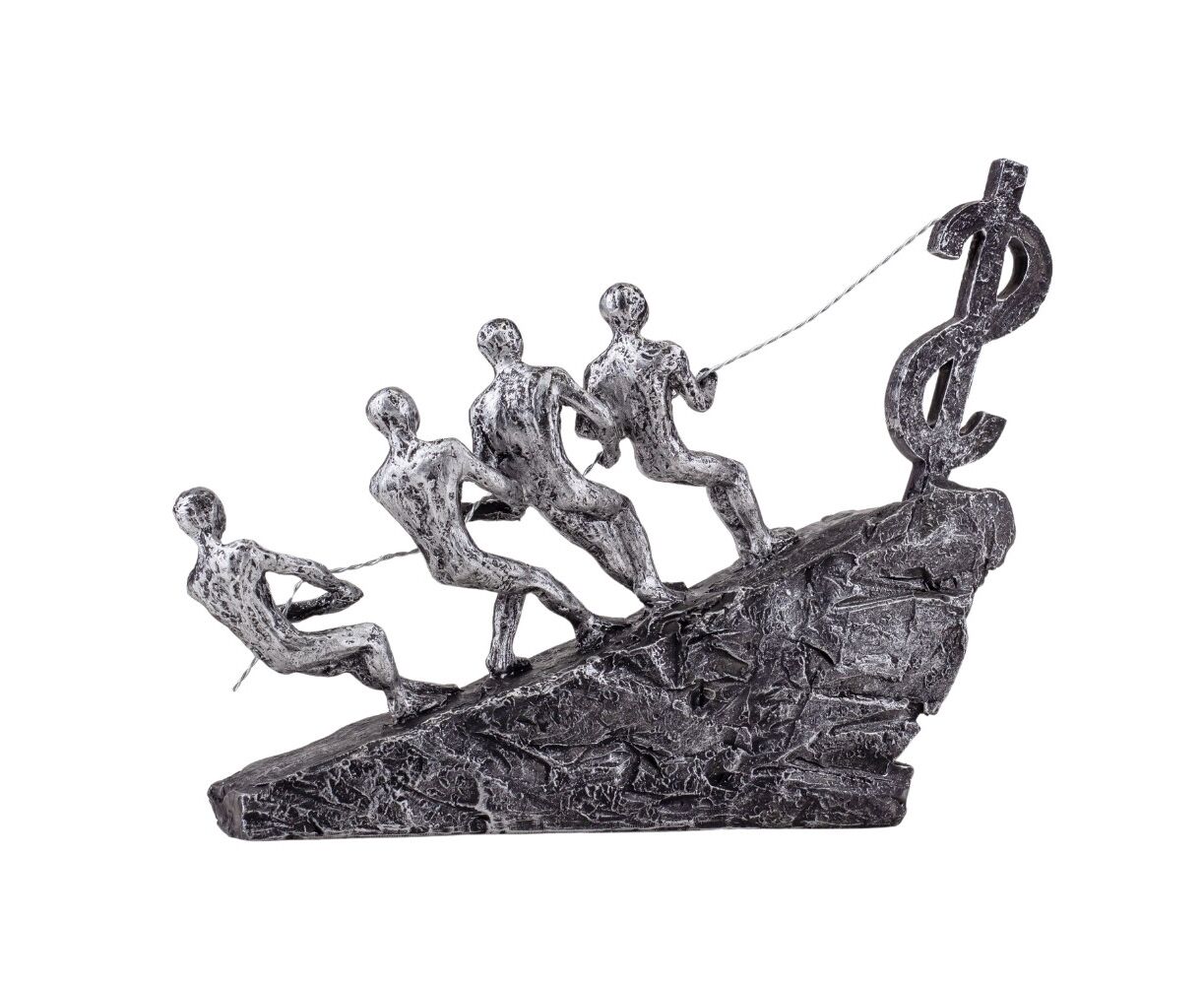 Высота статуэтки – 19 см, длина – 26 см, ширина – 4,5 см. Статуэтка из полистоуна отражает командную работу и совместные усилия по пути к финансовому успеху. Динамическая композиция передает борьбу, напряжение и силу коллективного труда, что ведет к достижению поставленных целей. Она станет отличным подарком для бизнесменов, руководителей команд или мотивирующим элементом в рабочем пространстве. Упакована в картонную коробку. Благодаря крепкой внутренней упаковке из пенопласта, которая имеет специальные углубления для мельчайших деталей, статуэтка будет надежно защищена во время транспортировки.