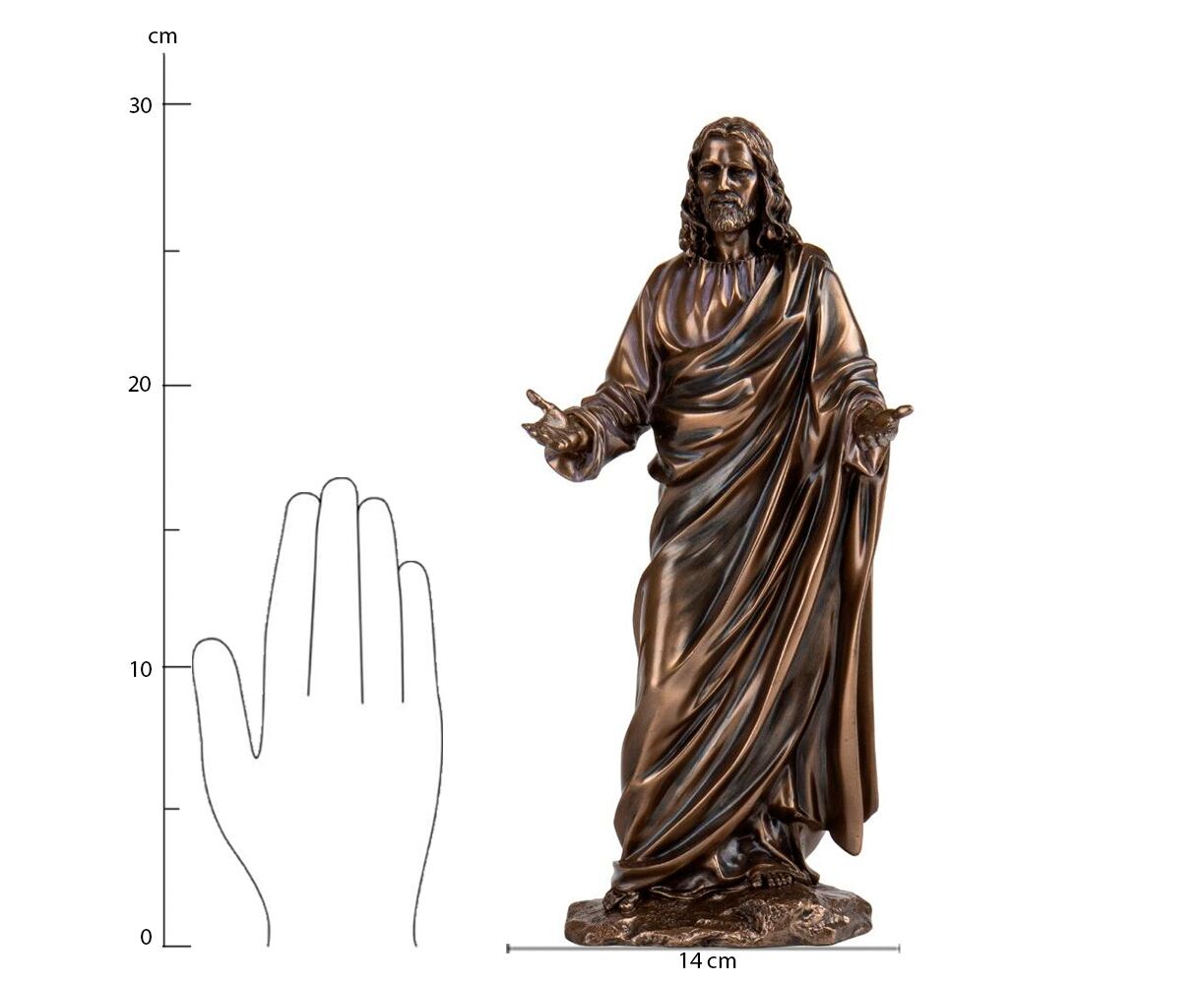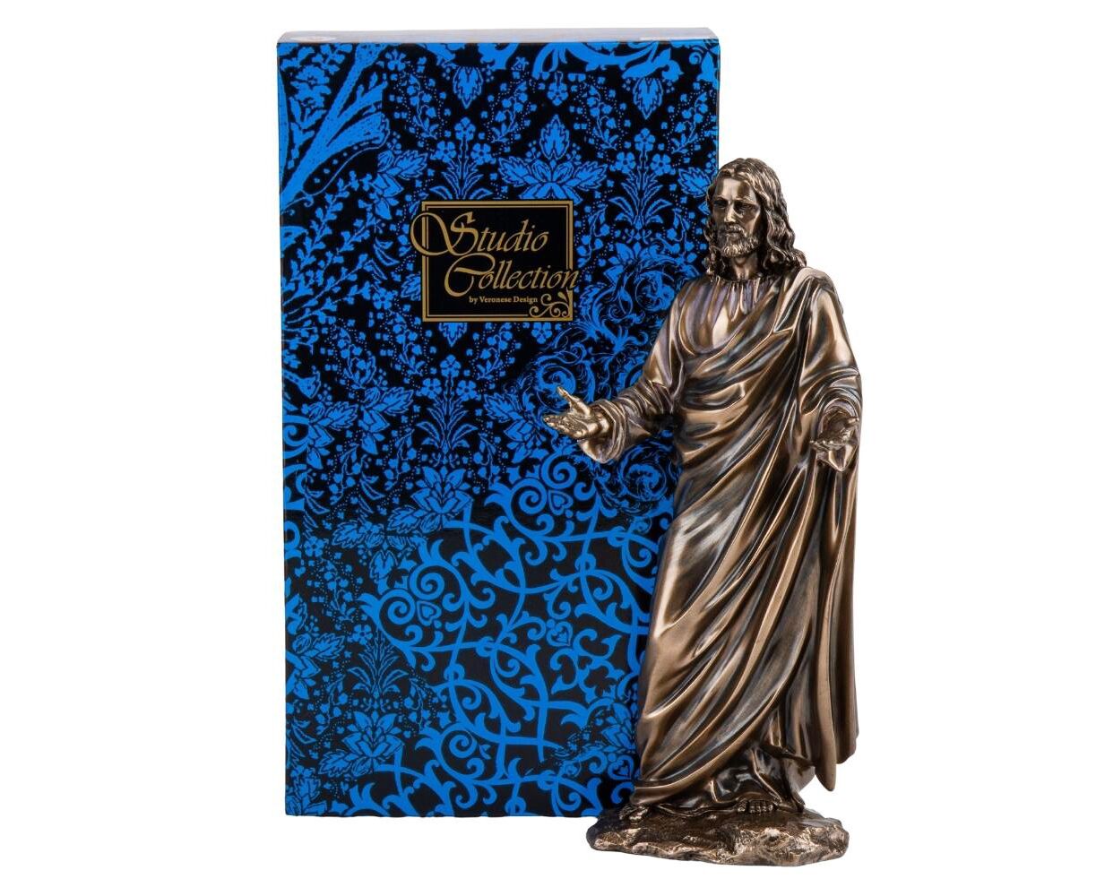 Статуэтка Veronese "Иисус" с изображением Спасителя - очень важный подарок для настоящего христианина. Это достойный презент в качестве поддержки в нелегкий период жизни близкого человека. Статуэтка изготовлена из полистоуна (искусственного камня) и покрыта бронзовым напылением. Упакована в красивую подарочную коробку. Поэтому покупая эту статуэтку, Вы получаете ценный и красивый подарок, который не требует дополнения. Благодаря надежной внутренней упаковке, изготовленной из пенопласта с углублениями для самых маленьких деталей, Вы можете быть уверенными в безопасности при транспортировке. Высота статуэтки - 29,5 см, ширина - 14 см, длина - 11 см. VERONESE