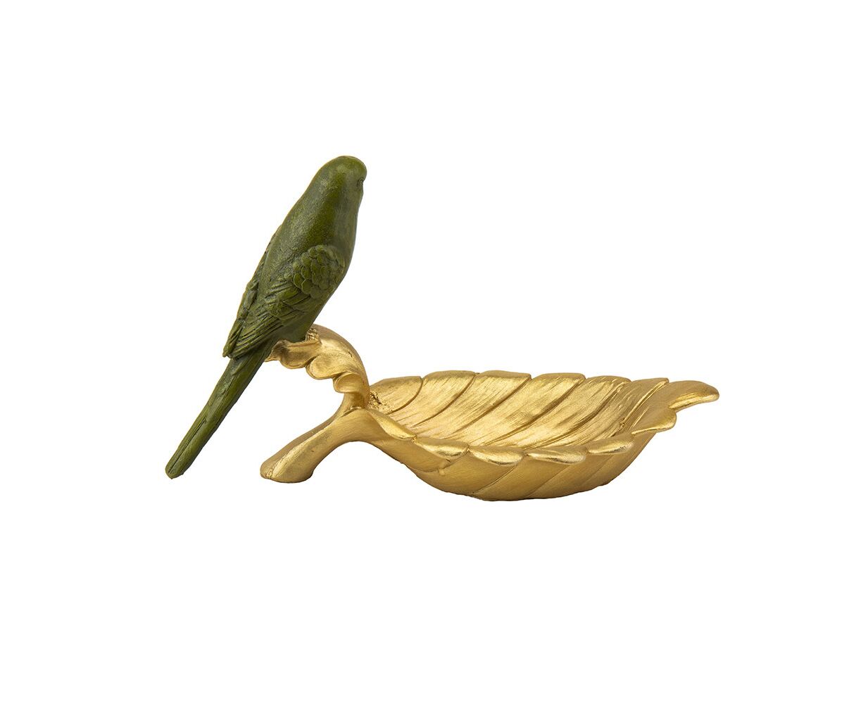 Декоративная фигурка попугая - это изящная, изысканная фигура из полистона золотистого цвета, которая идеально подходит для подарка творческой натуре, друзьям, коллегам. Это будет прекрасный сувенир в вашем доме - на полке, камине, столешнице в столовой или гостиной. Попугай сидит на устойчивой металлической подставке.
