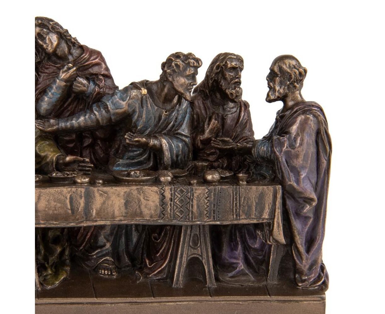 Статуэтка "Тайная Вечеря" обычно изображает Иисуса Христа с апостолами во время последней вечери, когда он отметил Пасху со своими учениками. Это событие является важным элементом христианской религиозной истории и искусства. Сцена включает Иисуса и двенадцать апостолов за столом, где состоялась вечеря, и она часто отражает эмоции, отношения и судьбу каждого из апостолов. Статуэтка "Тайная Вечеря" может быть особенным подарком для верующих христиан, любителей религиозного искусства и тех, кто ценит историю. Статуэтка изготовлена из полистоуна (искусственного камня) и покрыта бронзовым напылением. Упакована в красивую подарочную коробку. Поэтому покупая эту статуэтку, Вы получаете ценный и красивый подарок, который не требует дополнения. Благодаря надежной внутренней упаковке, изготовленной из пенопласта с углублениями для самых маленьких деталей, Вы можете быть уверенными в безопасности при транспортировке. Высота статуэтки - 9 см, ширина - 22,5 см, длина - 5 см. VERONESE