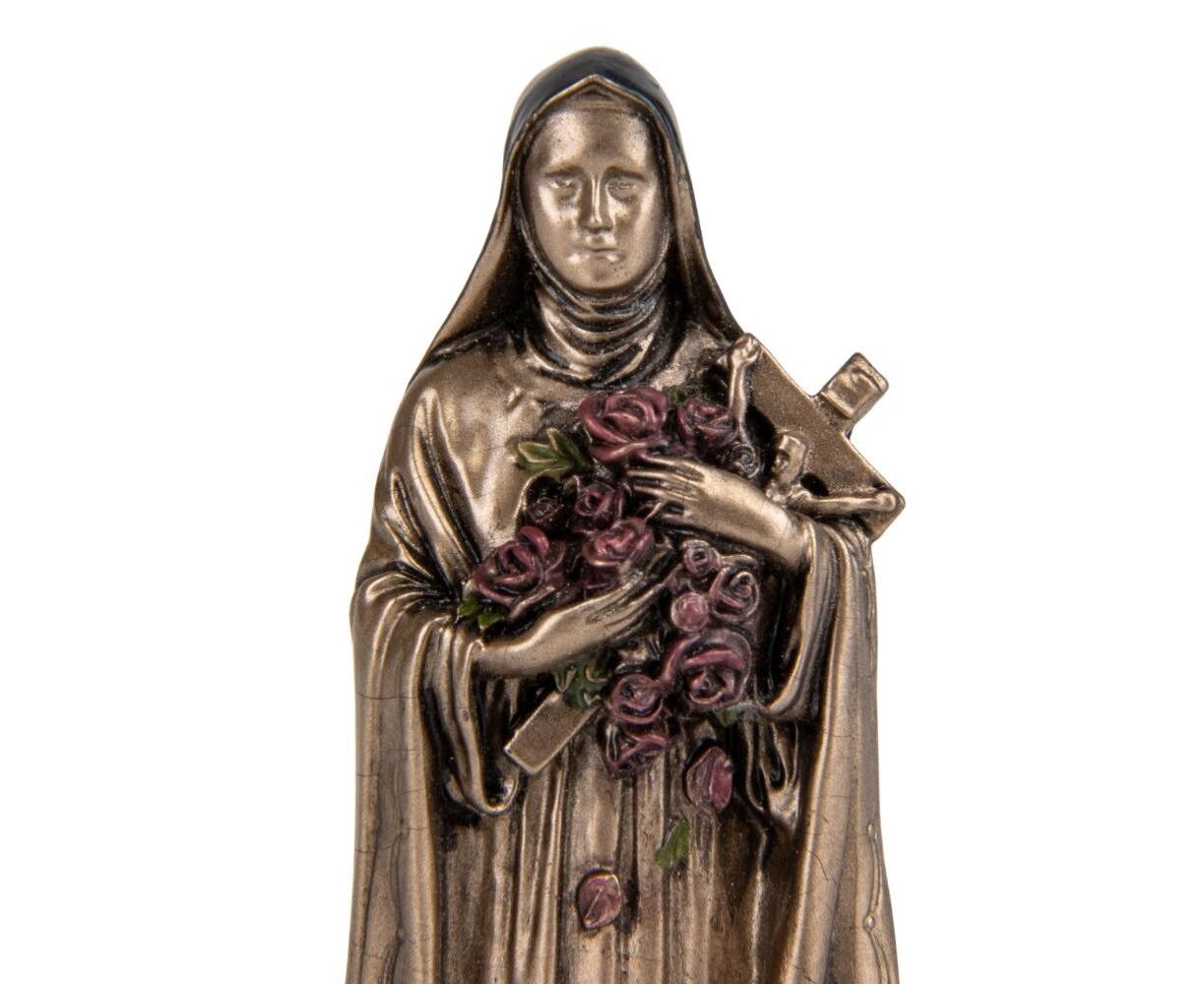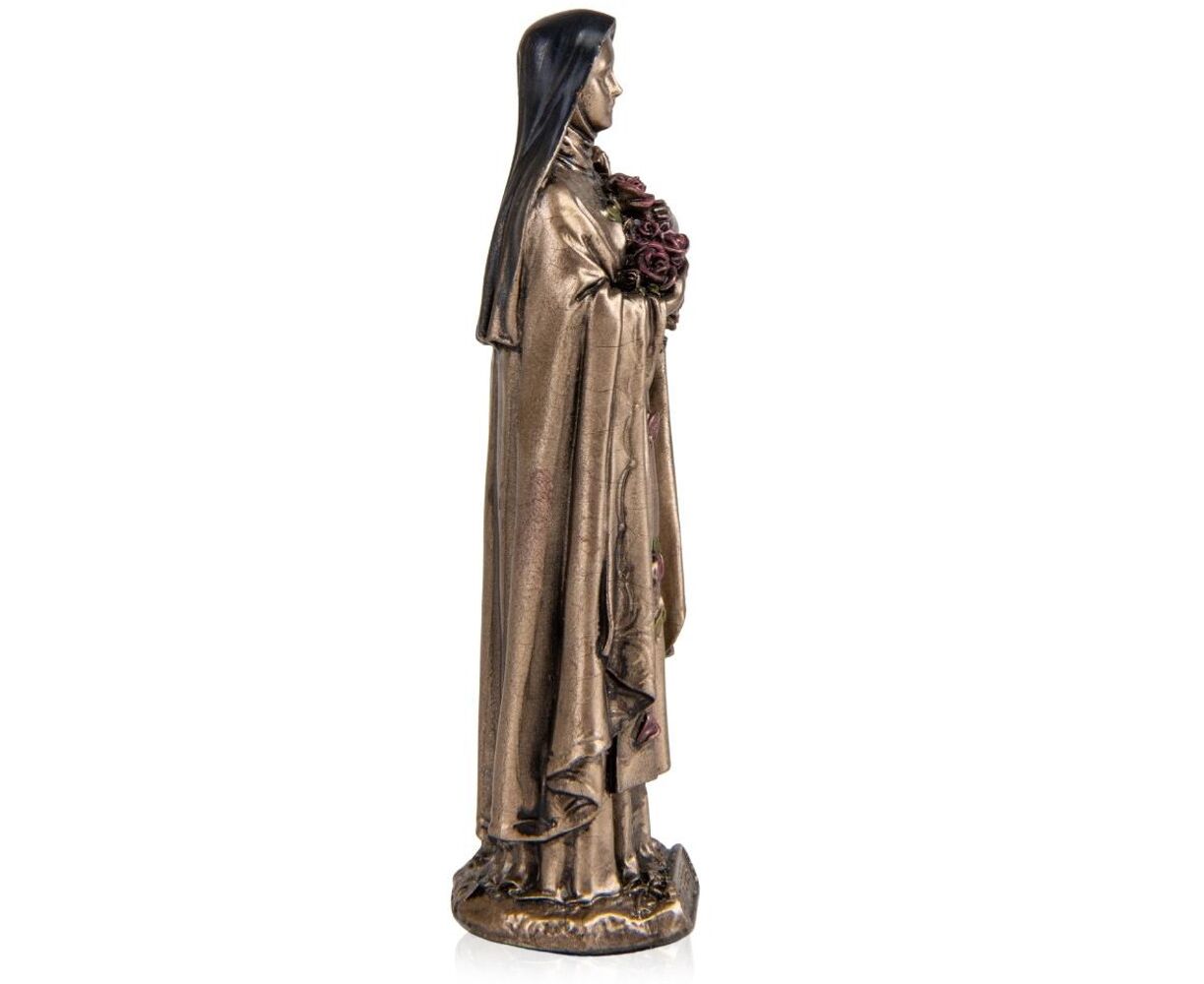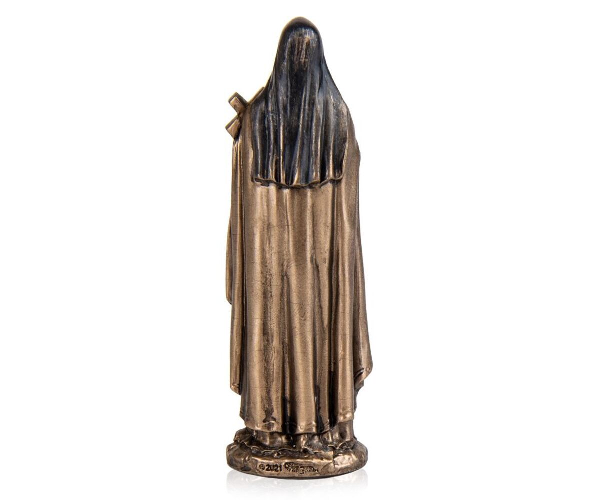 Статуэтка Веронезе «Тереза» изображает Мать Терезу, которая прославилась своей гуманитарной деятельностью и служением самым бедным и нуждающимся людям. Святая Тереза была известна своим бескорыстием и любовью к ближнему. Статуэтку Святой Терезы можно подарить верующему, волонтерам, благотворителям и в качестве выражения благодарности и признания. Статуэтка выполнена из полистоуна (искусственного камня) и покрыта бронзовым покрытием. Упакован в красивую подарочную коробку. Поэтому, покупая эту статуэтку, вы получаете ценный и красивый подарок, не требующий сложения. Благодаря надежной внутренней упаковке, изготовленной из пенопласта с углублениями для мельчайших деталей, вы можете быть уверены в сохранности при транспортировке. Высота статуэтки 8,5 см, ширина 3 см, длина 2,2 см. VERONESE
