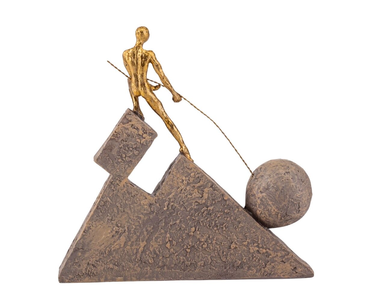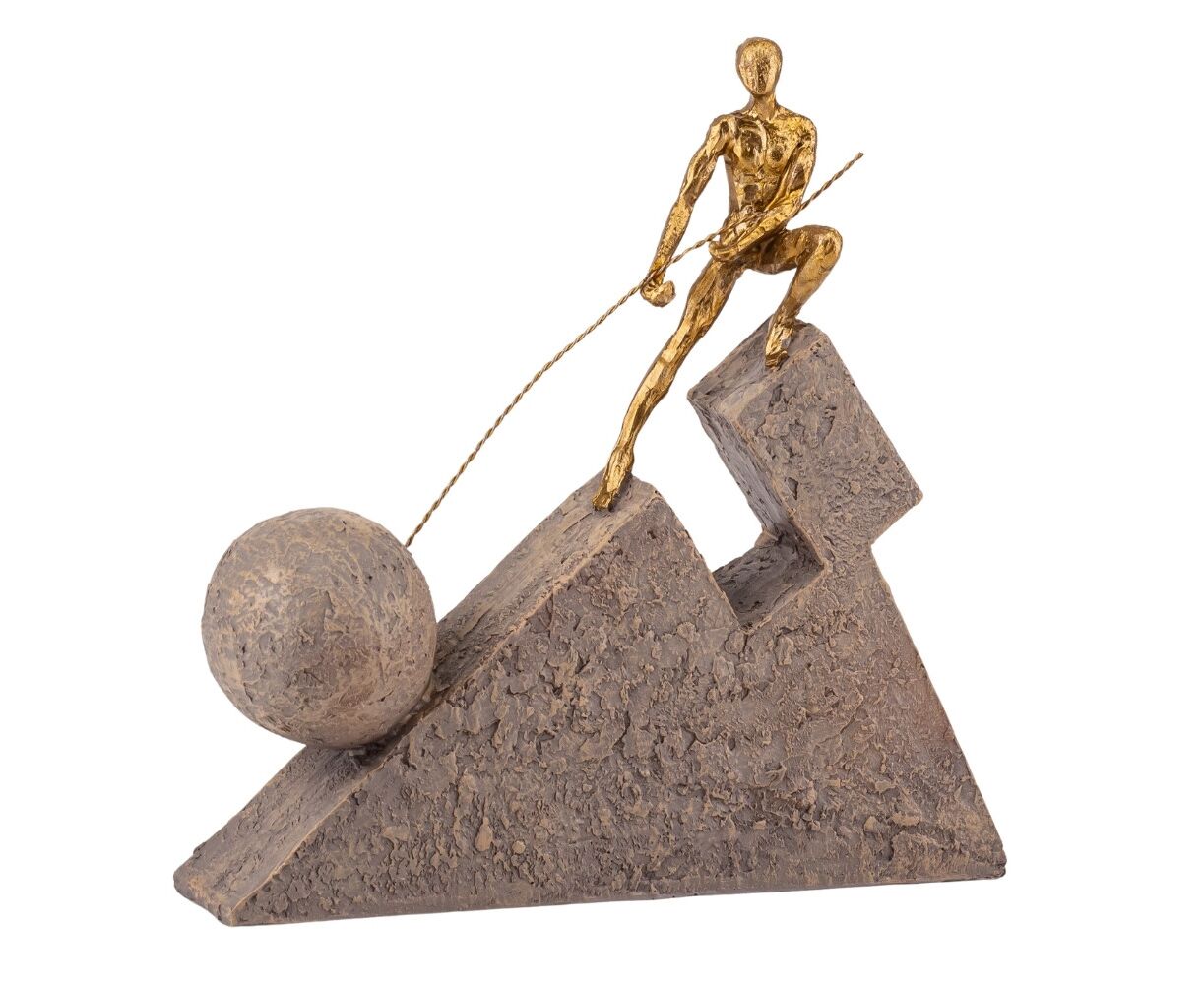 Высота статуэтки – 21 см, длина – 21 см, ширина – 4,2 см. Эта статуэтка из полистоуна олицетворяет борьбу и несокрушимость духа, передавая динамический момент напряженного взаимодействия человека и силы тяжести. Контрастная фактура каменного основания и фигуры с металлическим эффектом подчеркивает сложность задачи и настойчивость в достижении цели. Изящная детализация делает ее идеальным акцентом в пространстве, что символизирует настойчивость, вызов и силу воли. Статуэтка стойко стоит на подставке. Упакована в картонную коробку. Благодаря крепкой внутренней упаковке из пенопласта, которая имеет специальные углубления для мельчайших деталей, статуэтка будет надежно защищена во время транспортировки.