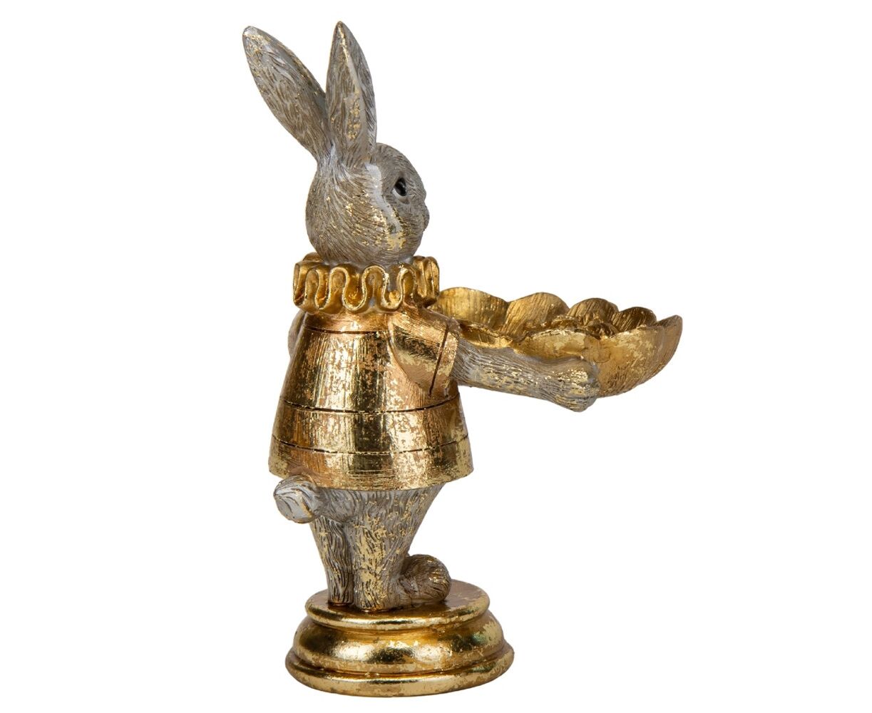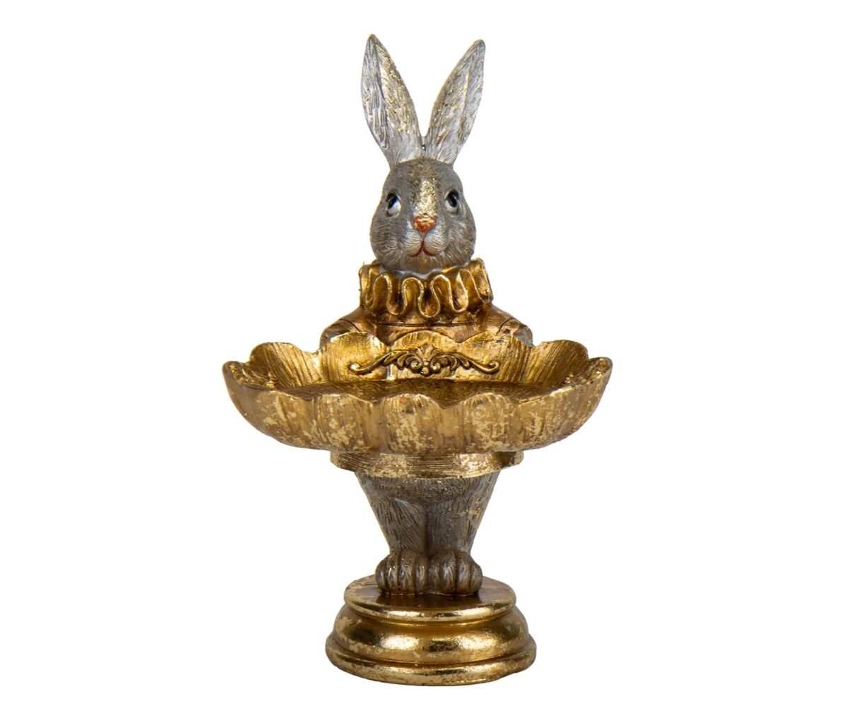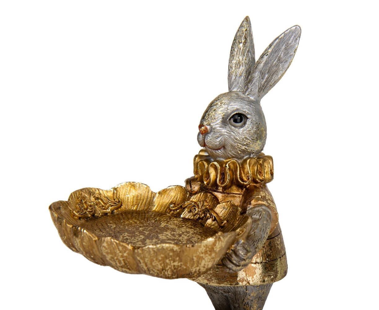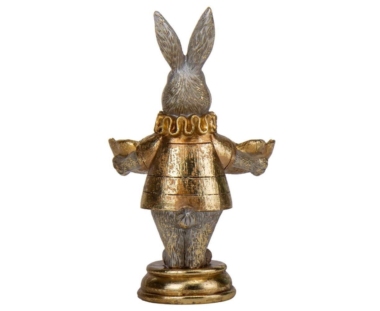 Высота статуэтки – 15 см, длина – 9 см, ширина – 10 см. Декоративная фигурка золотого кролика вызывает невероятный восторг своей элегантной формой, реалистичными деталями, качеством. Это креативный декор для Вашего дома, фотостудии, магазина или кафе. Статуэтка имеет изысканный внешний вид, изготовлена из высококачественного материала – полистоуна, имеет благородный бронзовый цвет. Статуэтка будет вызывать приятные эмоции. Фигурка стойко стоит на подставке.
