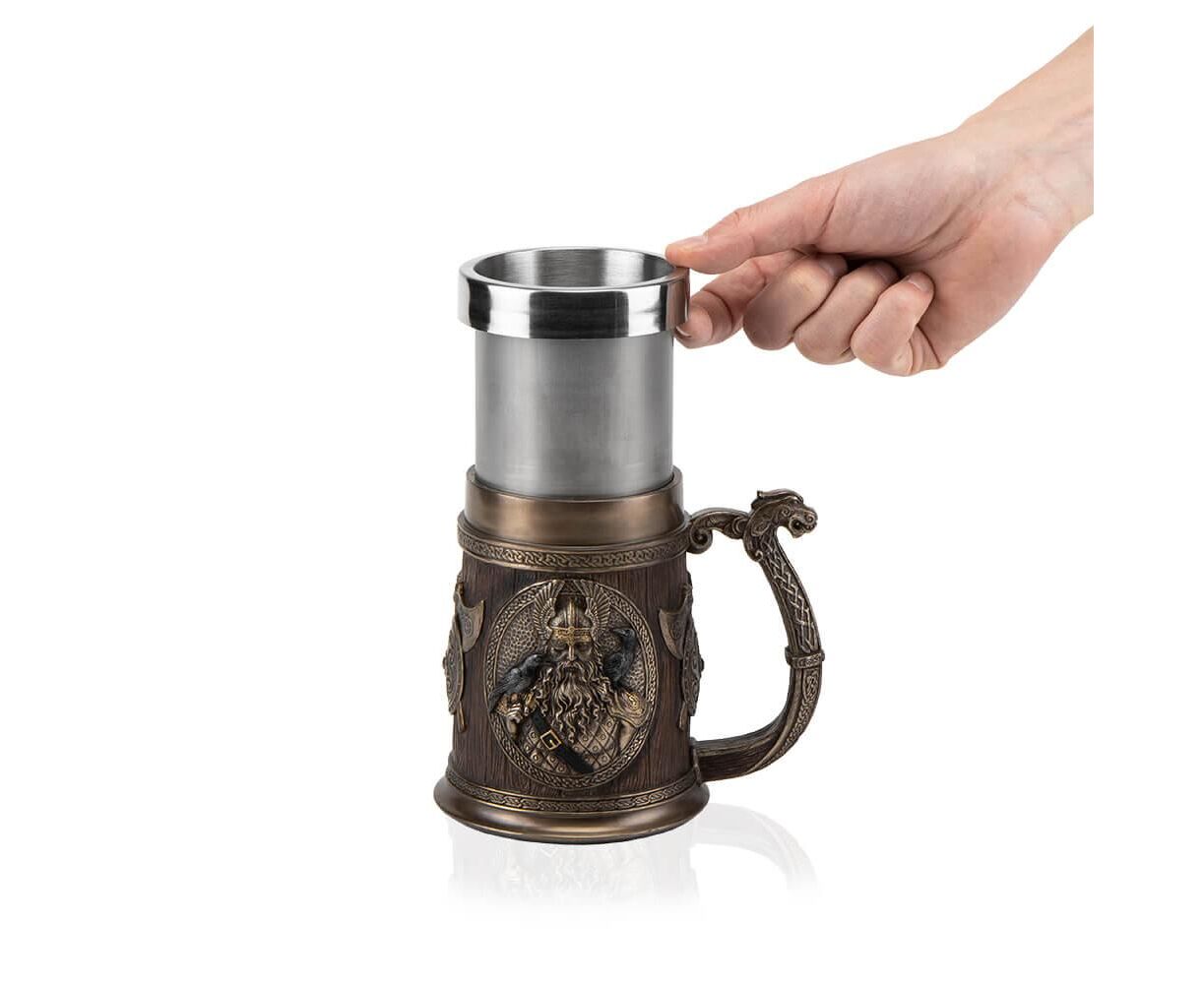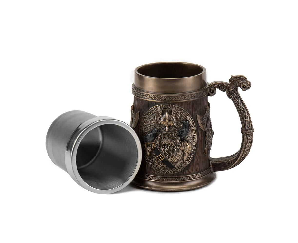 Ищите идеальный подарок для любимого, папы или шефа? Тогда этот пивной бокал от известного итальянского бренда Veronese «Викинг» – идеальный вариант. Только взгляните, насколько детально проработаны все детали отделки и насколько изысканно и дорого выглядит этот бокал. Такой подарок однозначно порадует его владельца! Пивной бокал идет в подарочной фирменной упаковке. Внутри бокала находится съемная емкость, которую удобно вынимать и аккуратно споласкивать, при этом не травмируя и не поддавая никаким температурам бокал. Благодаря надежной упаковке из пенопласта с углублением для всех деталей, вы можете не переживать за сохранность подарка при транспортировке. Объем пивного бокала - 600 мл, высота - 14, 5 см. VERONESE