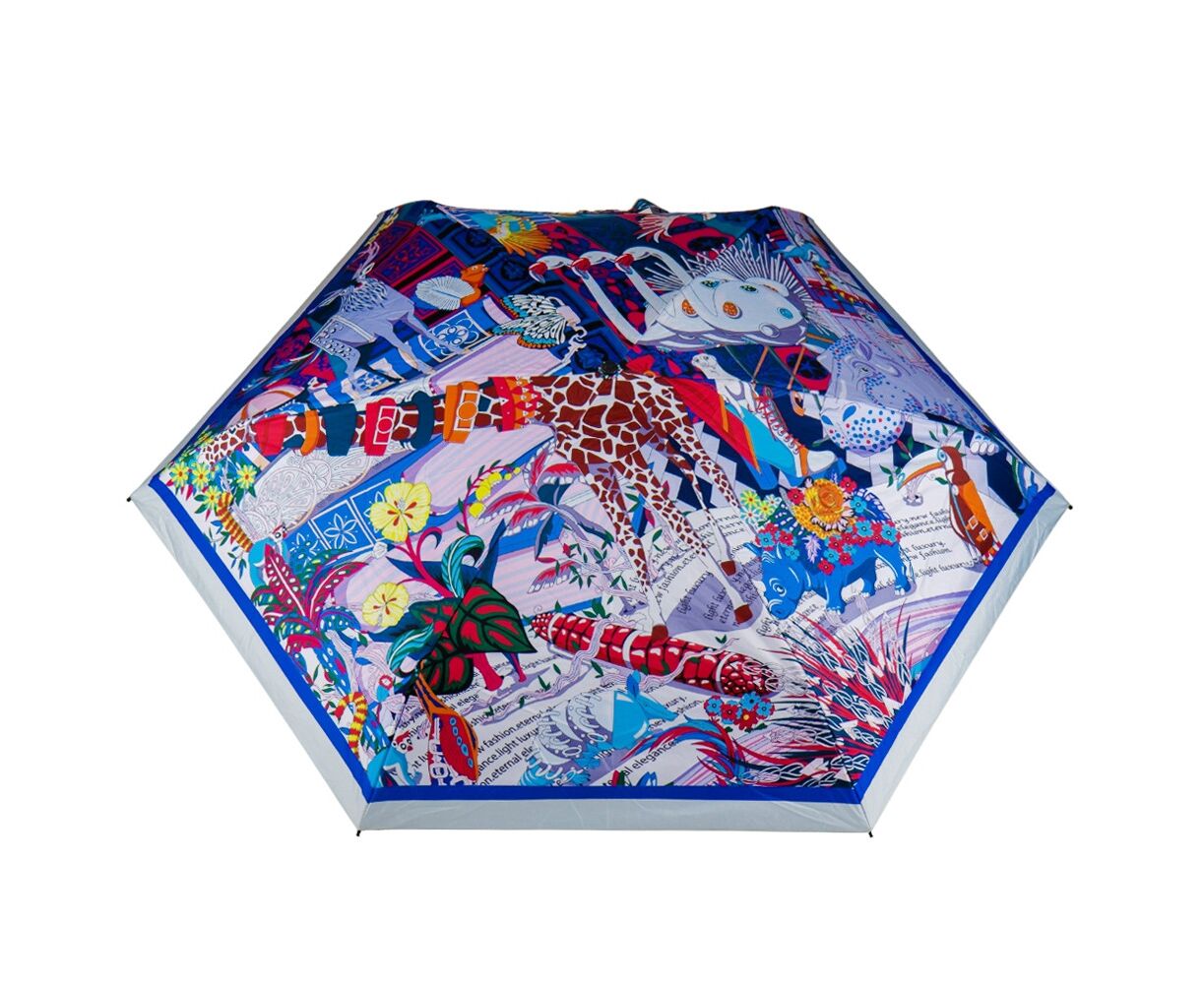 Диаметр зонтика – 90 см. Ручной механизм. Зонтик в сложенном виде в удобной сумочке. Высота сумки с ручками – 31 см. Зонтик имеет оригинальный, яркий принт. Это идеальный выбор для тех, кто ценит качество, стиль и защиту от непредсказуемой погоды. Независимо от погодных условий вы будете иметь под собой не только надежный оберег, но и стильный аксессуар, который дополнит любой образ! Удобная ручка и легкая конструкция делают идеальным выбором для ежедневного использования. Наслаждайтесь защитой от погодных условий без потери элегантности!